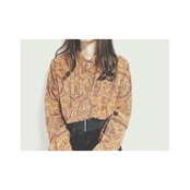古着屋 レトロ ペイズリー 柄 ノーカラーブラウス
