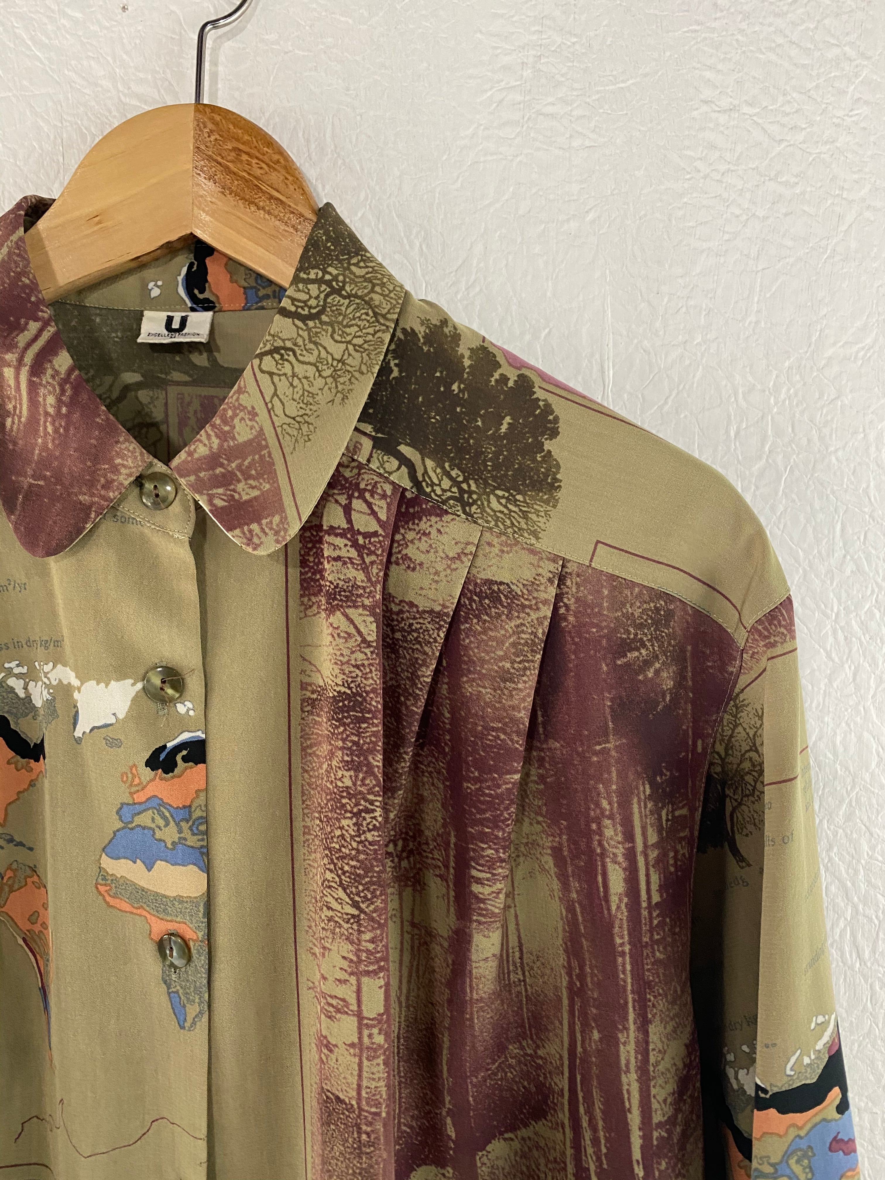 古着屋 レトロ ユニセックス アースカラー 地図柄シャツ