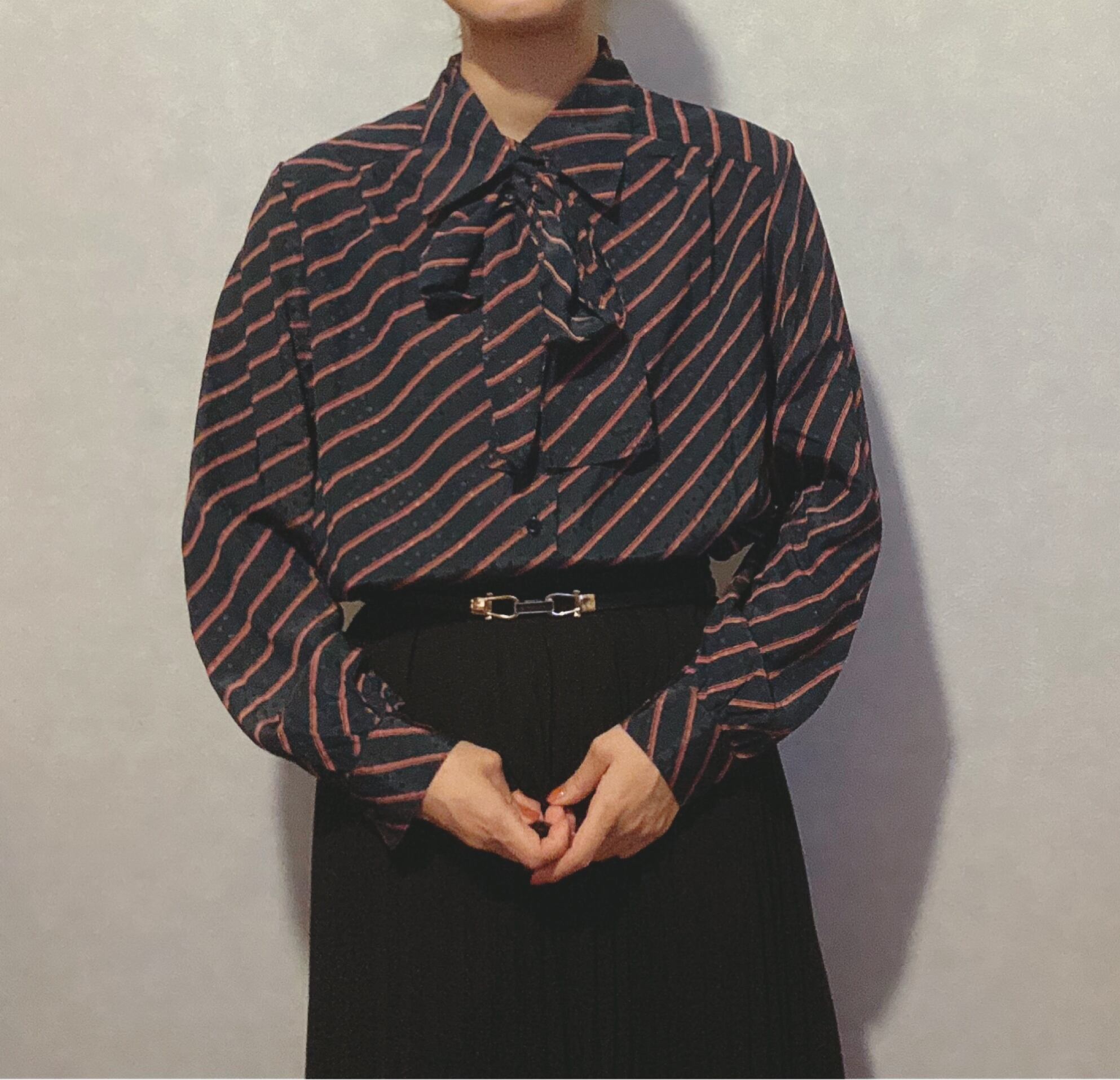 古着屋 昭和レトロ ドットストライプのリボン付きブラウス