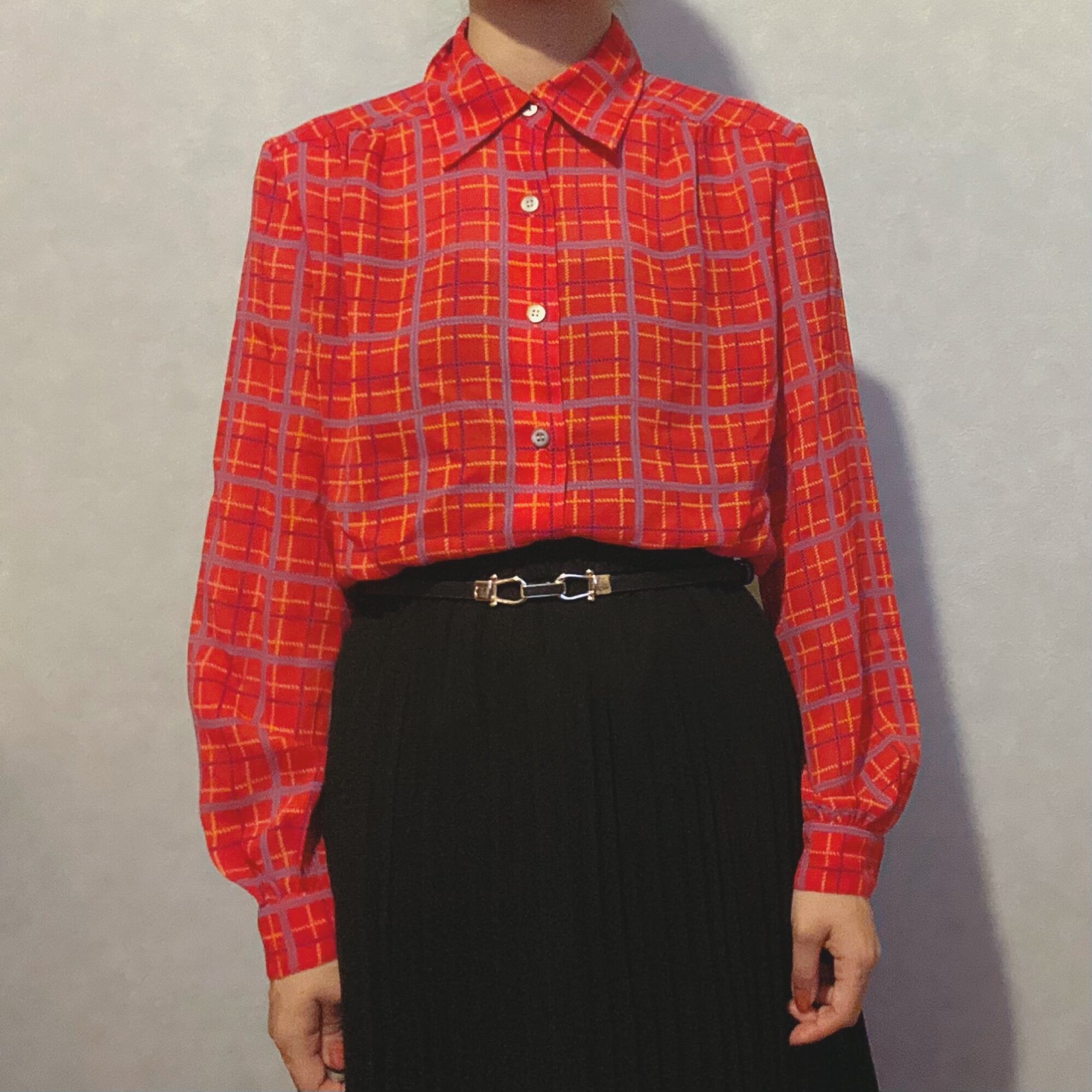 古着屋 レトロ 格子チェックのブラウス