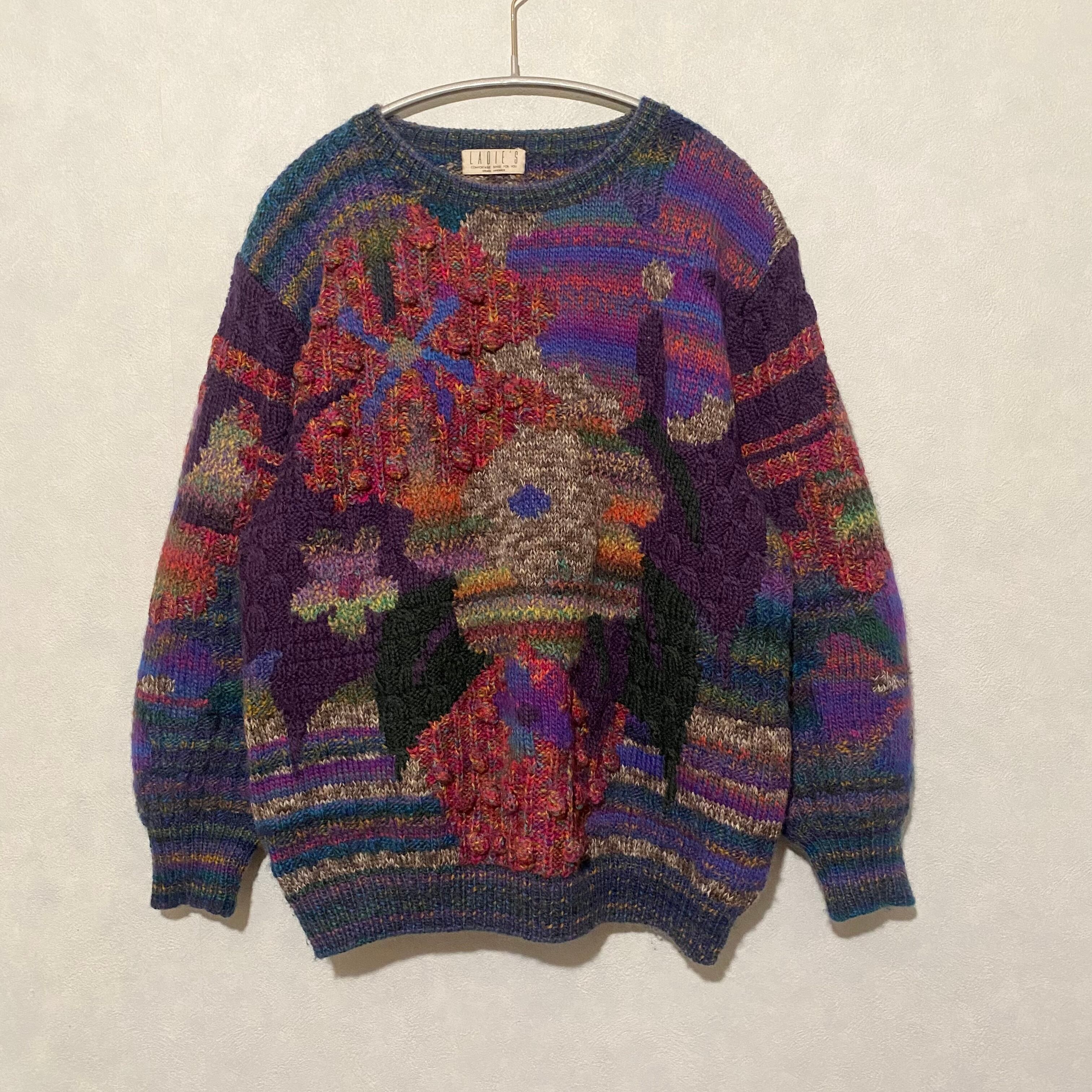 古着屋 レトロ 3Dニット 派手柄 ぽこぽこニット