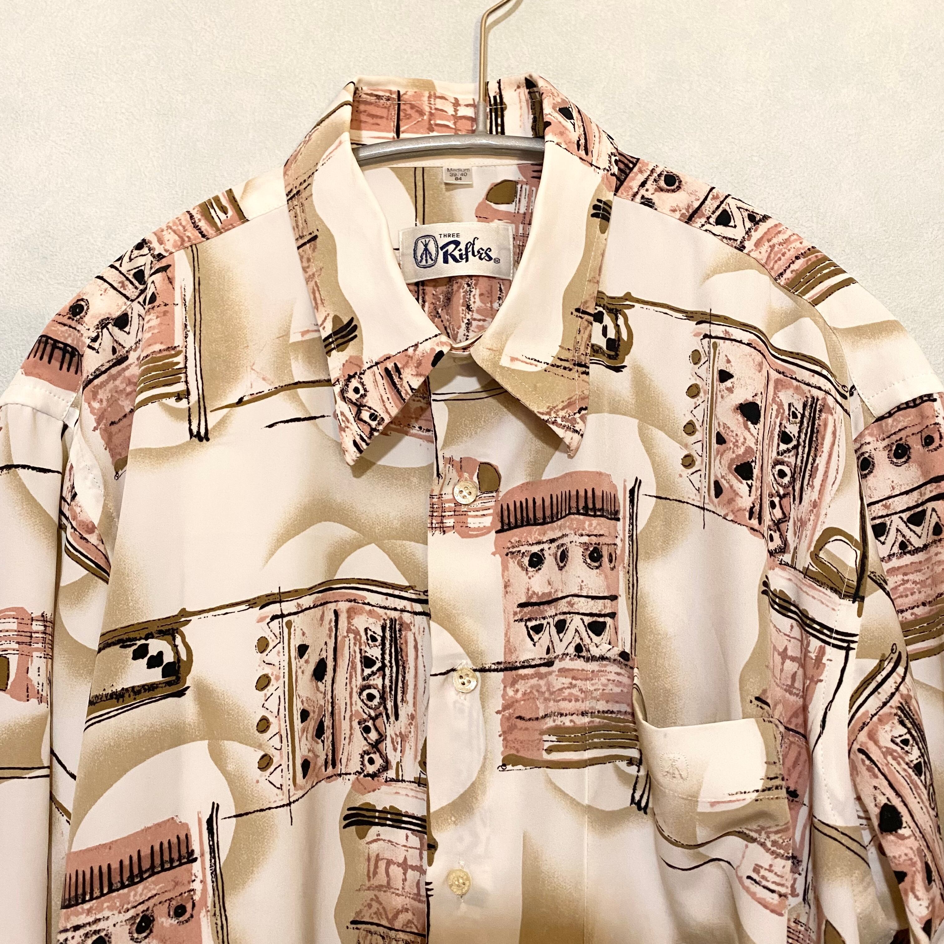 古着屋 レトロ 総柄 アート柄 くすみカラー 柄シャツ