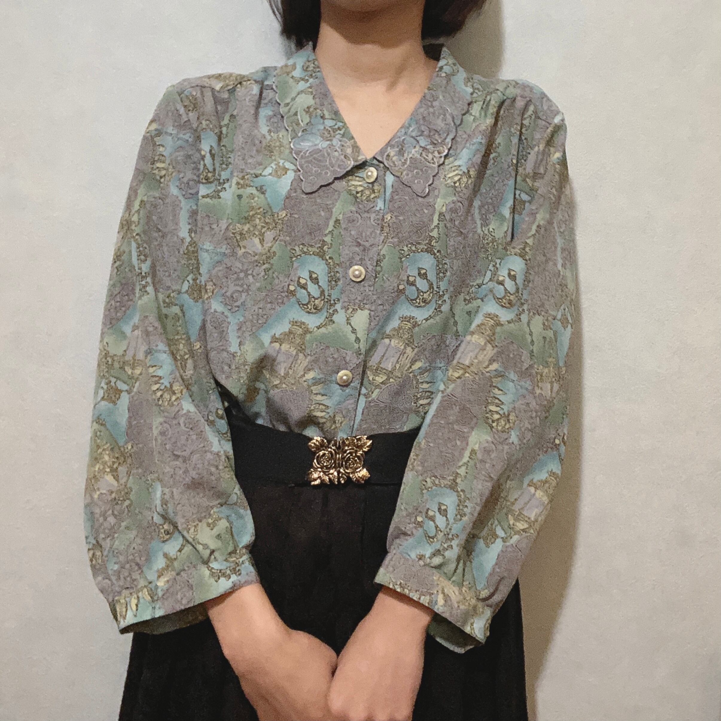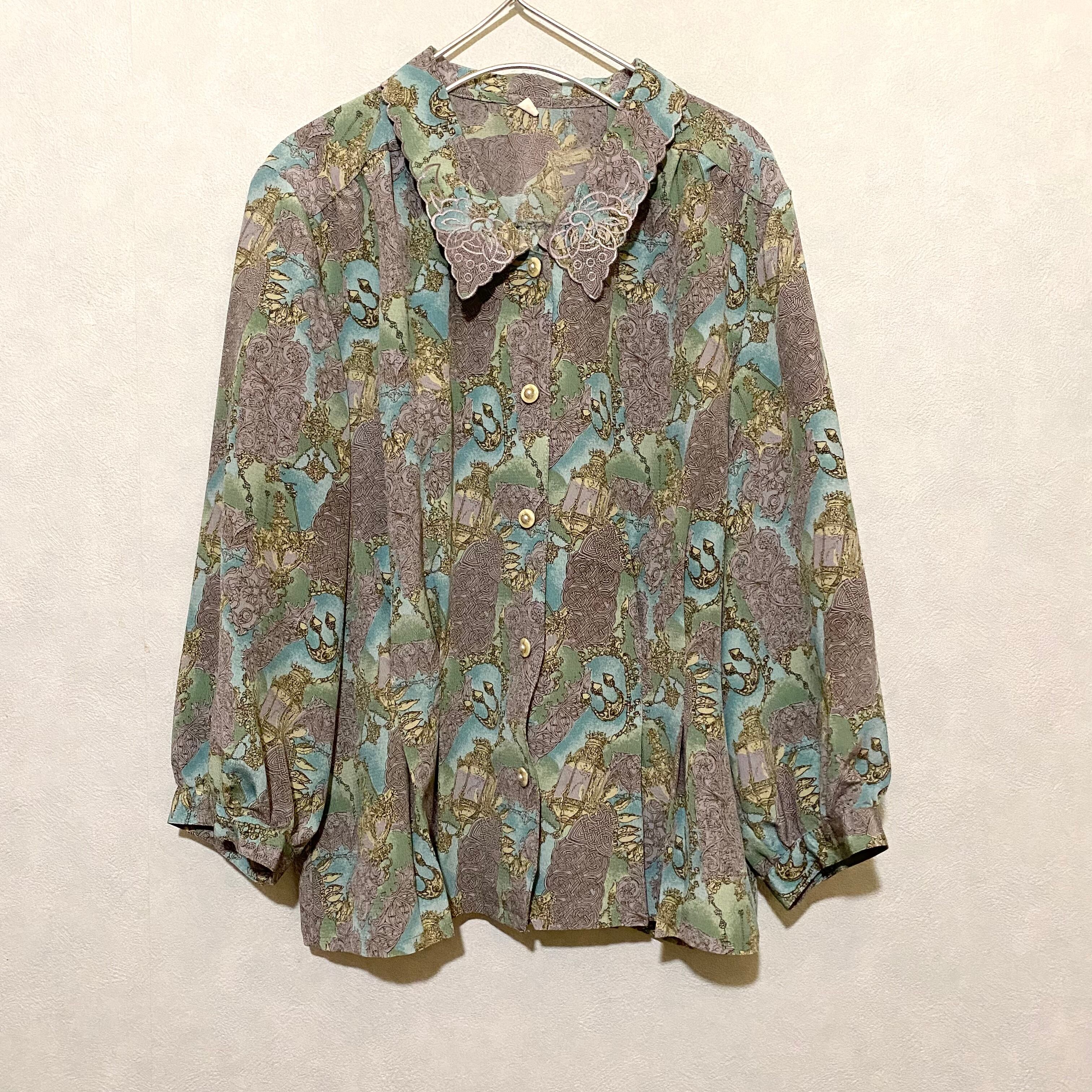古着屋 アンティーク レトロ スカラップ襟 柄シャツ ブラウス