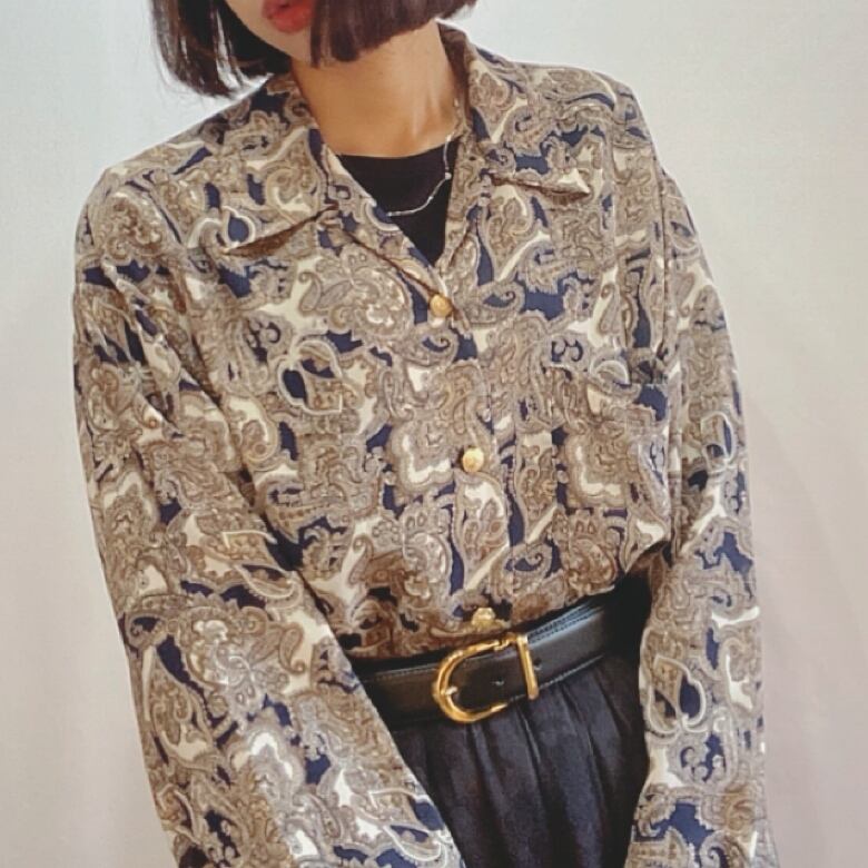 古着屋 レトロ ペイズリー ヨーロピアン 金ボタン 柄シャツ