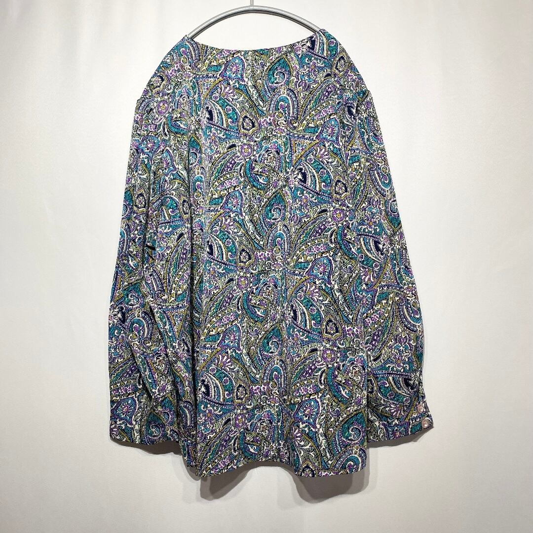 古着屋 レトロ 総柄 ノーカラーブラウス