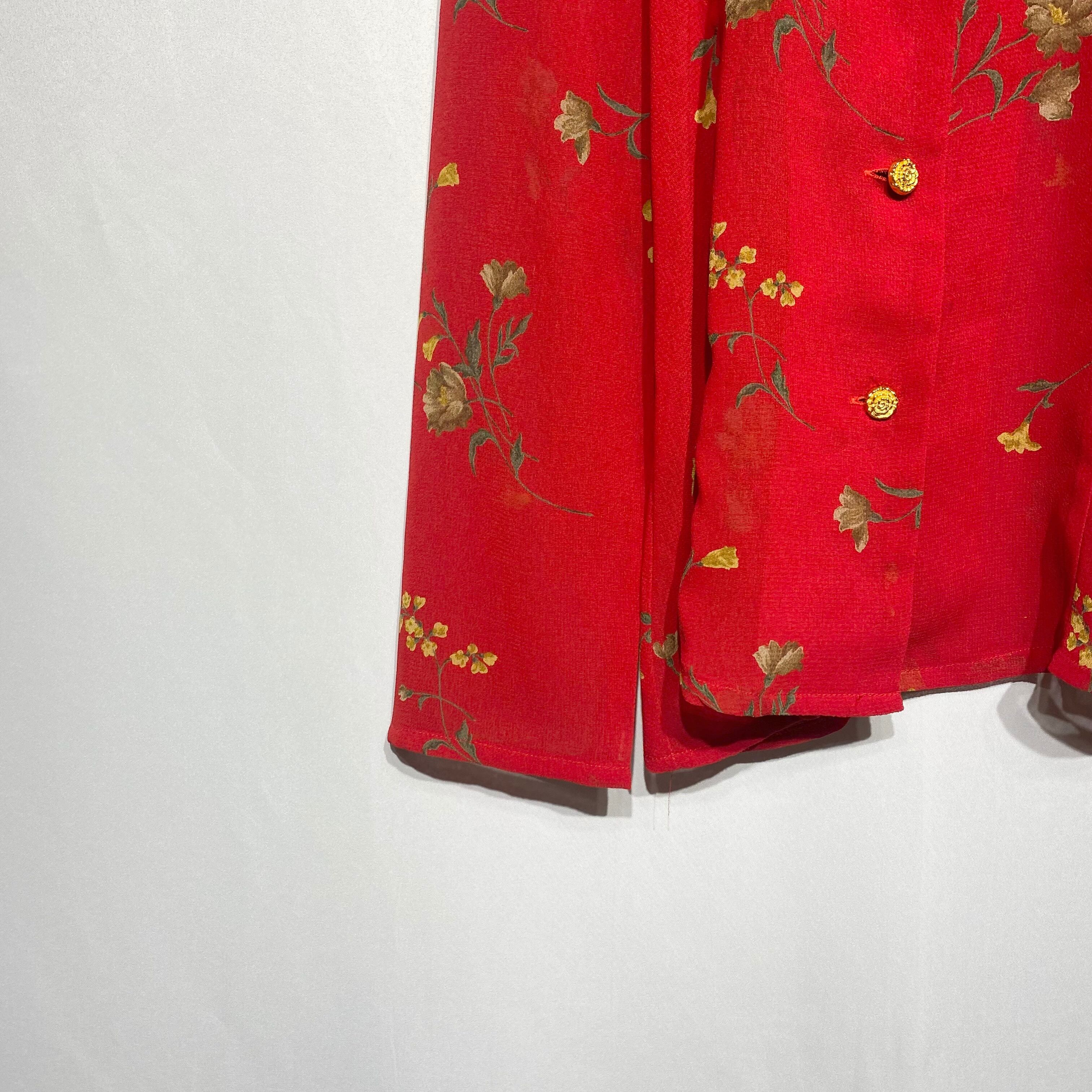 古着屋 レトロ 金ボタン 花柄 シースルーブラウス