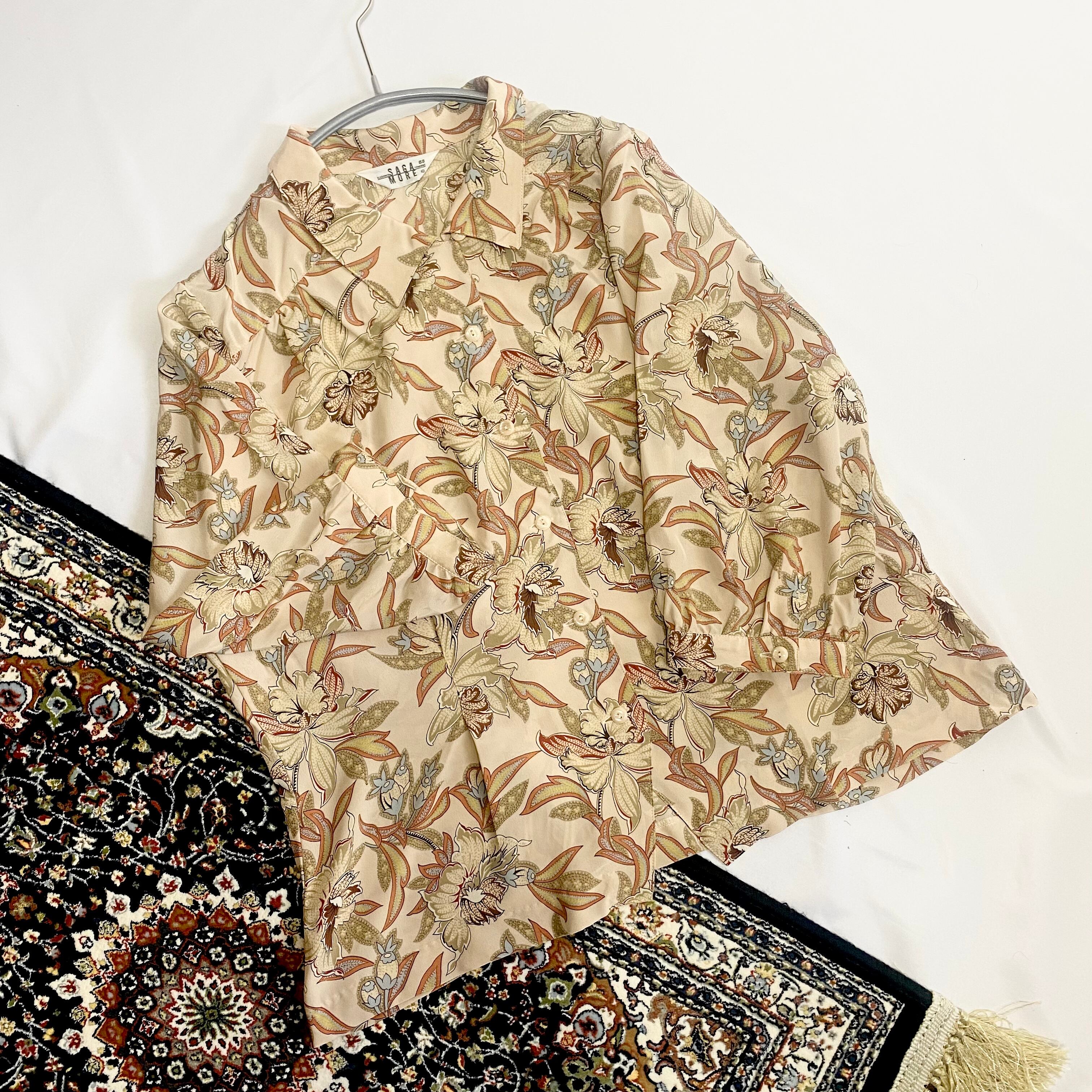 古着屋 レトロ ボタニカル柄 七分袖 ブラウス
