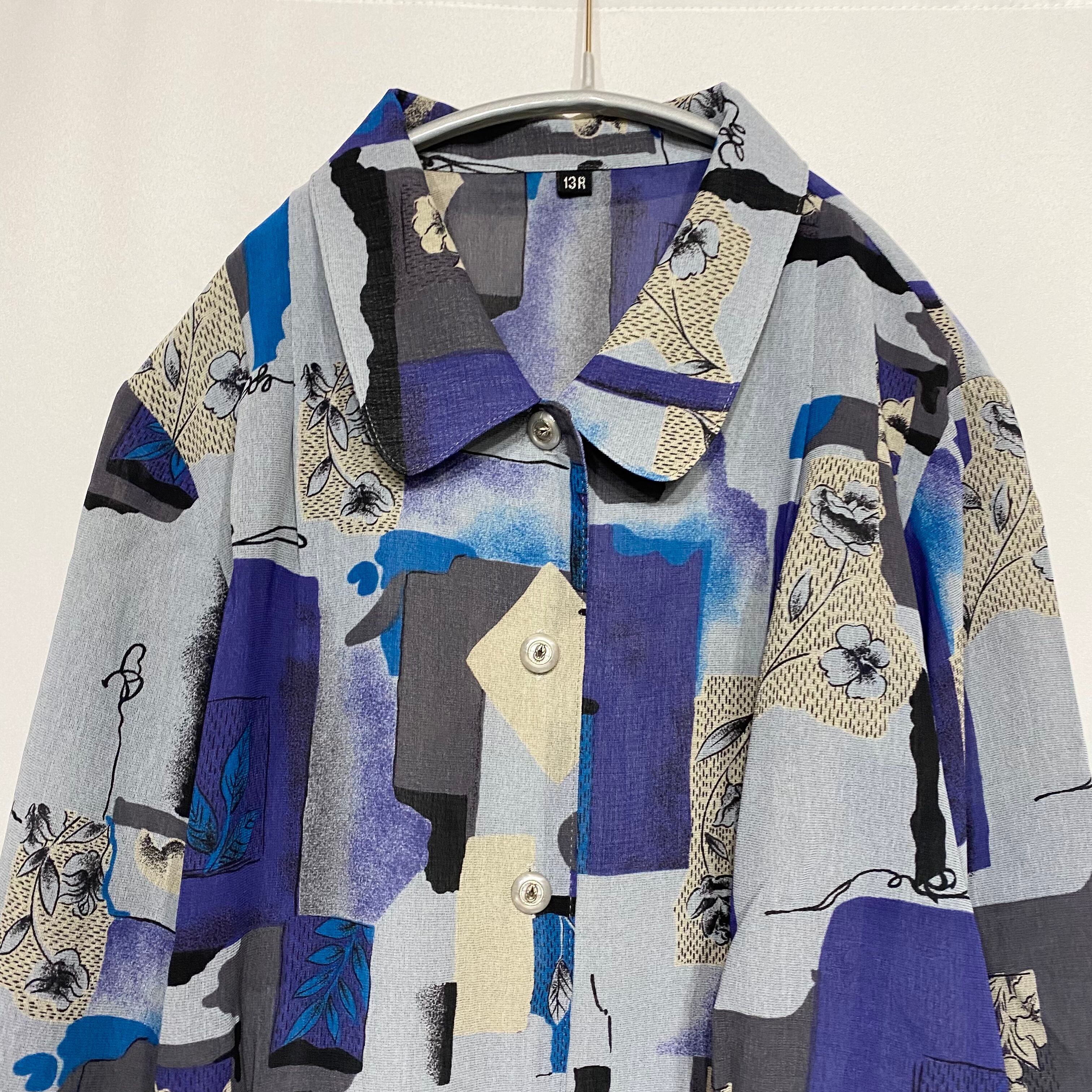 水彩画のようなアート柄と花柄がかわいいブラウスです◎