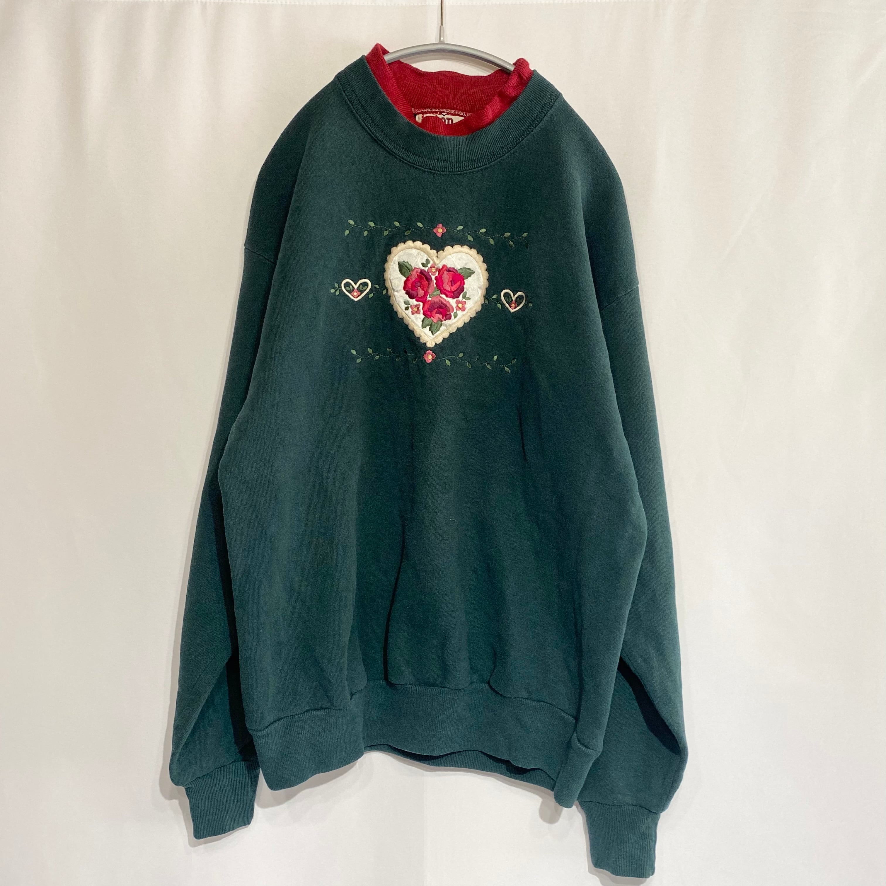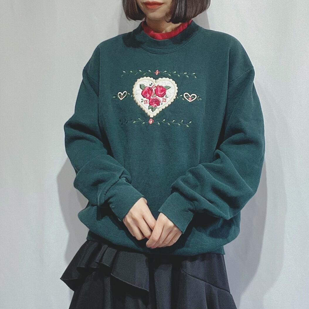 古着屋 USA vintage 薔薇 ハート刺繍 スウェット