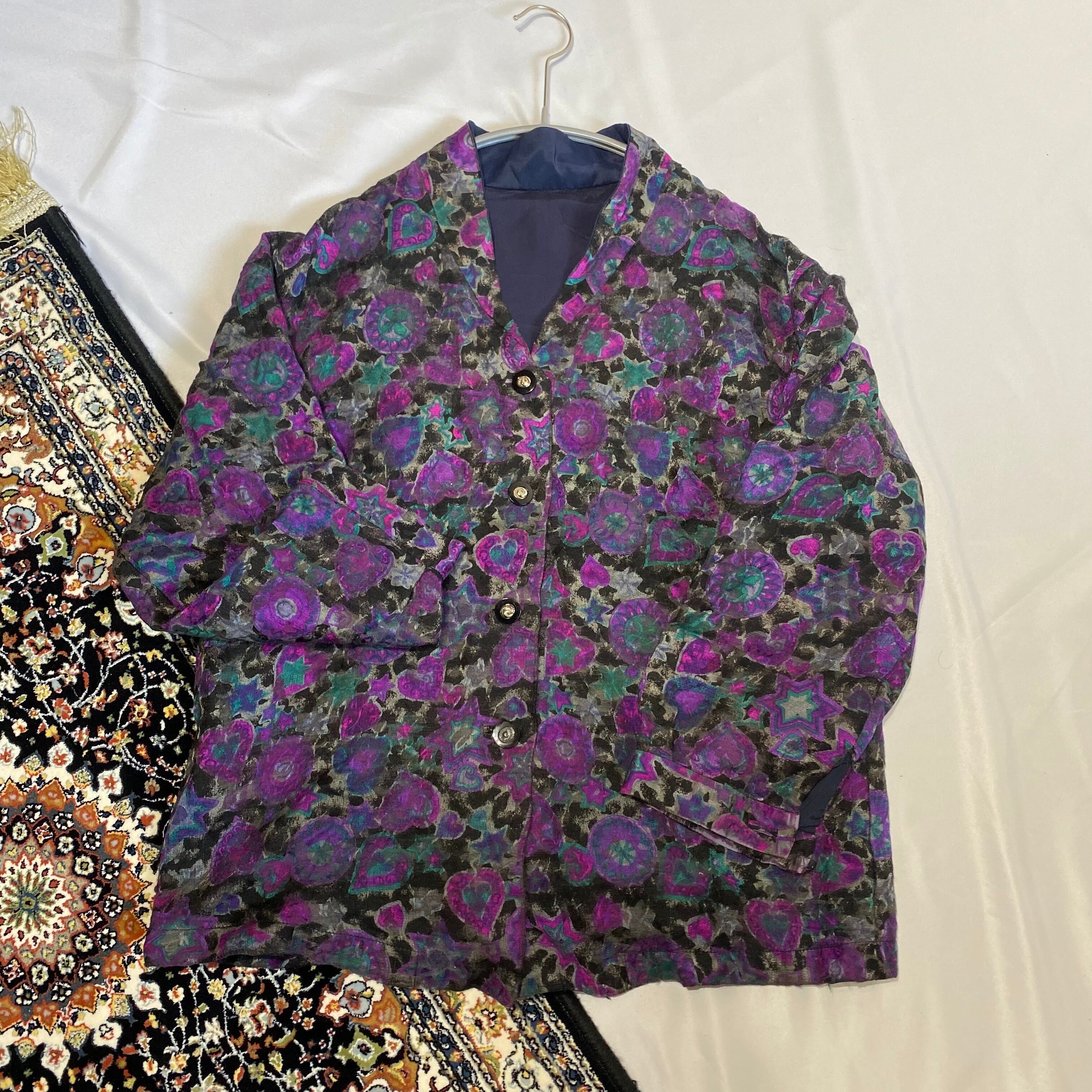 古着屋 レトロ 総柄 個性的 ノーカラー ジャケット ブラウス