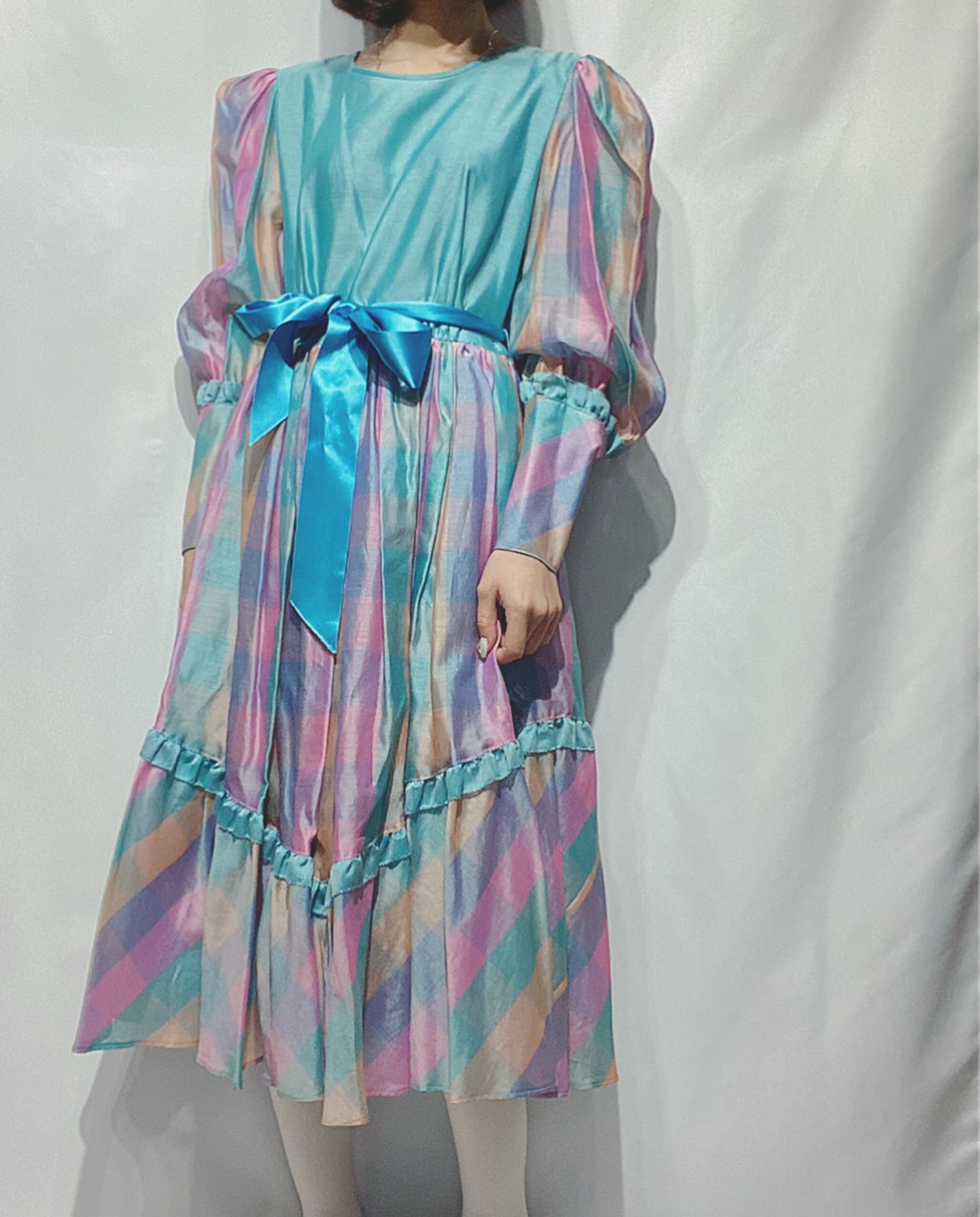 古着屋 vintage ドレス 一点もの チェック ゆめかわ ワンピース 衣装