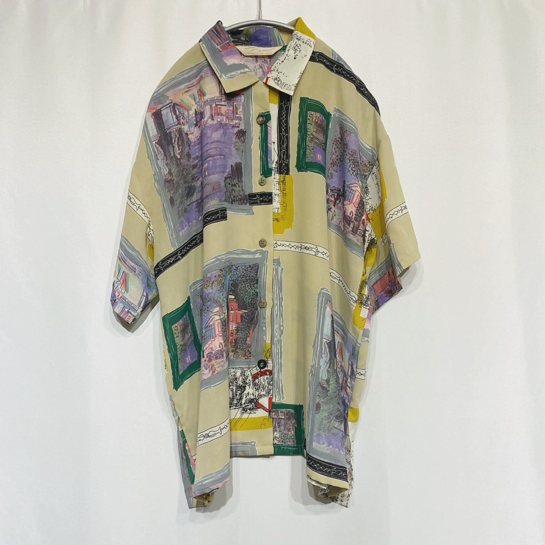 古着屋 レトロ ユニセックス アート柄 ヨーロピアン 総柄ブラウス