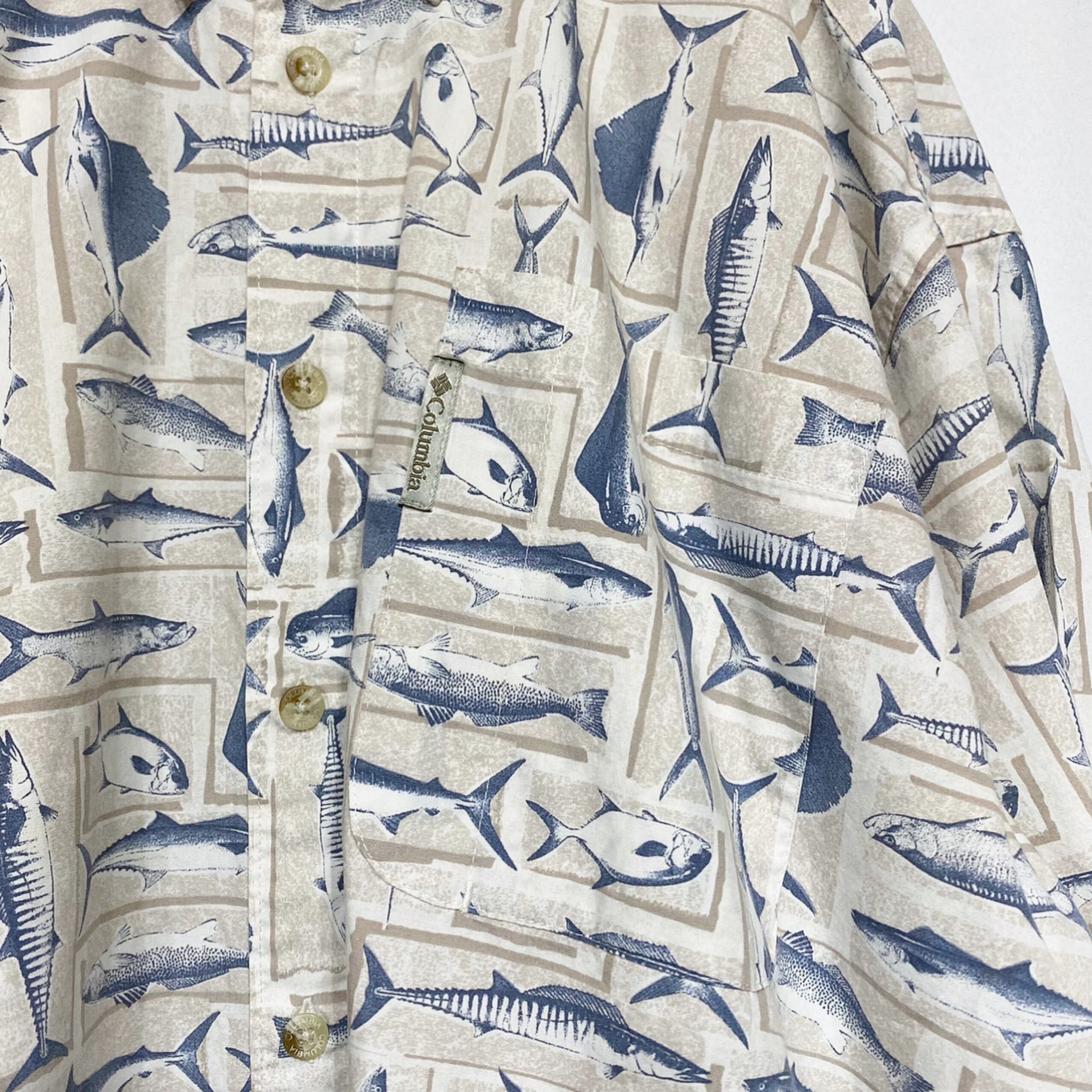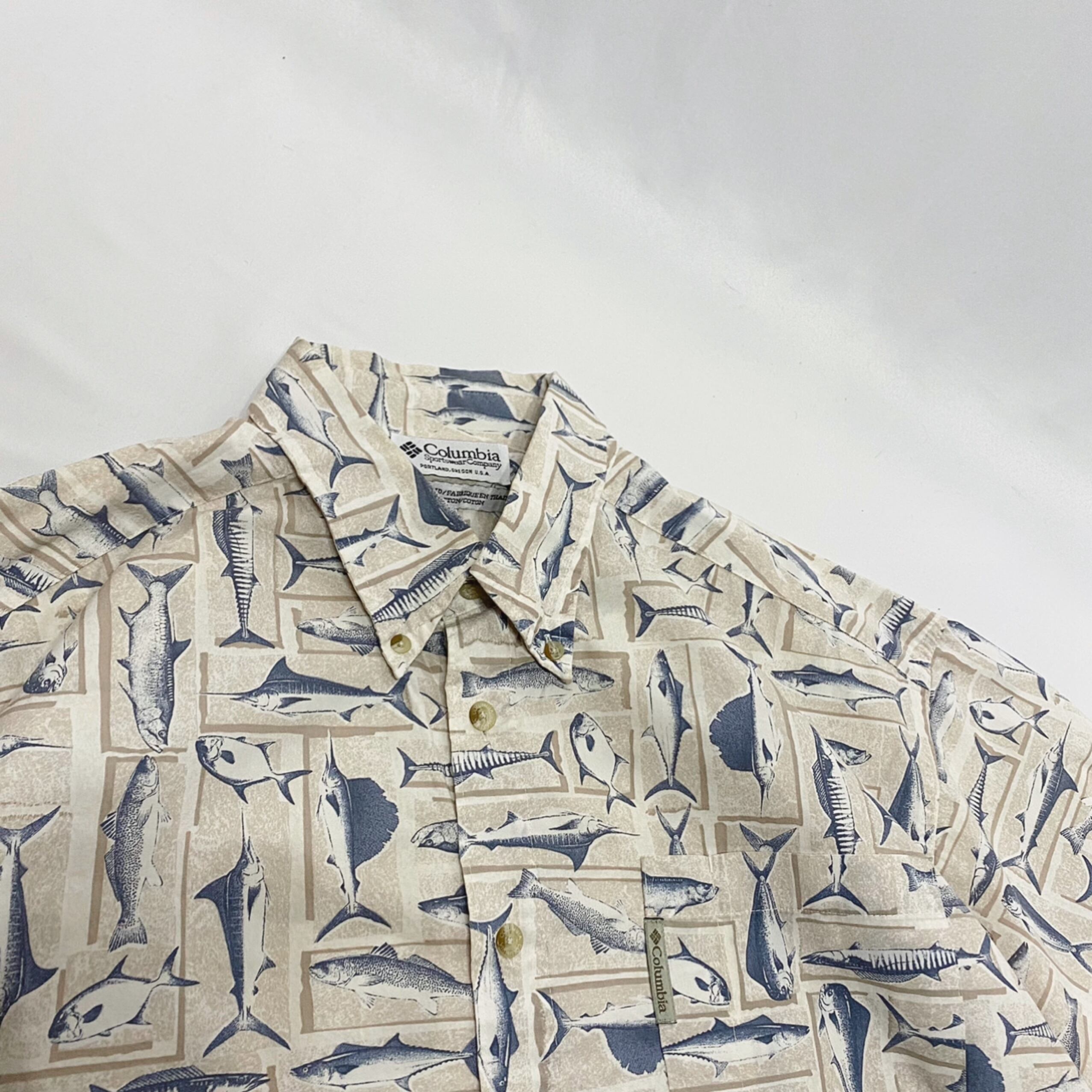 古着屋 columbia 90s レトロ アースカラー コロンビア 魚柄 フィッシング シャツ