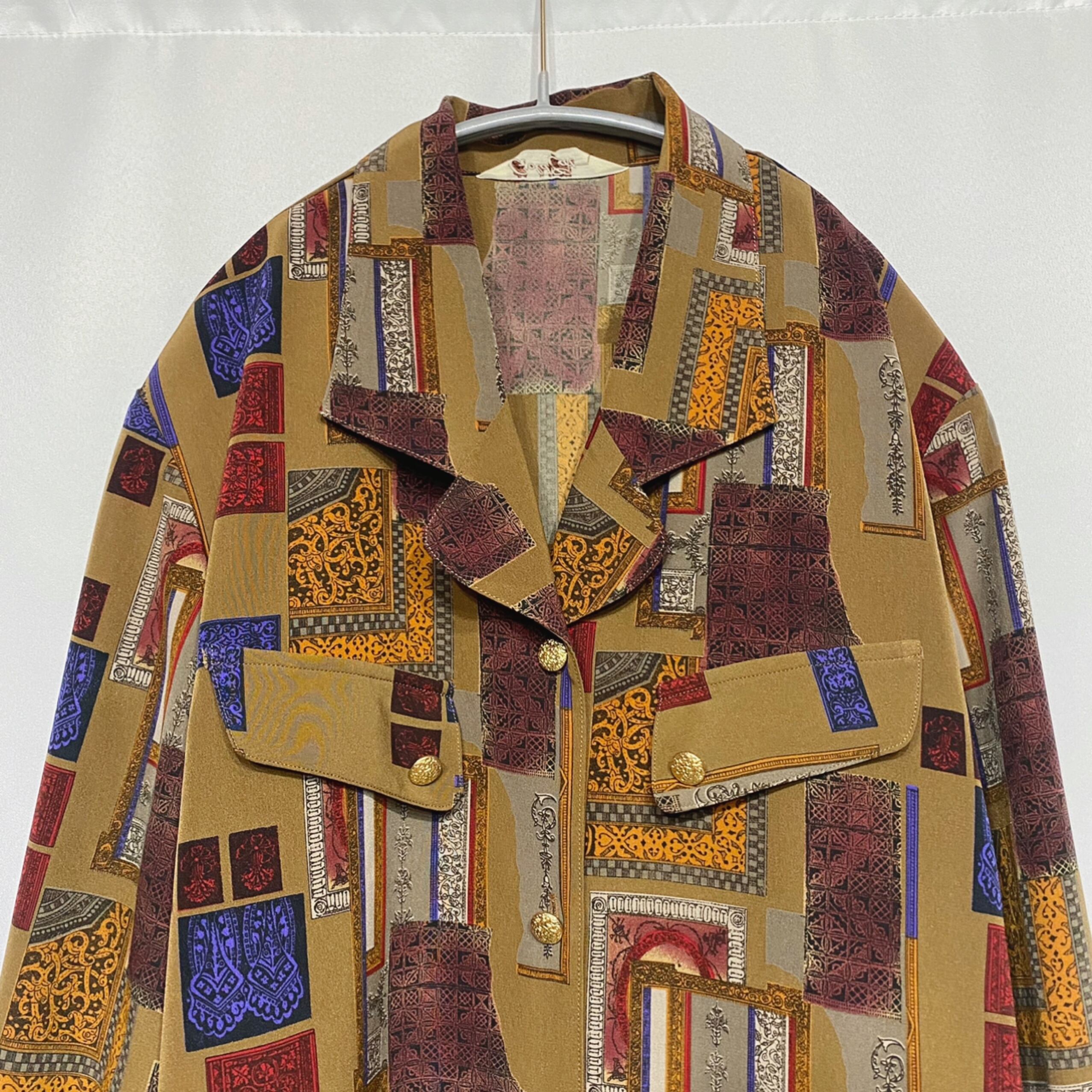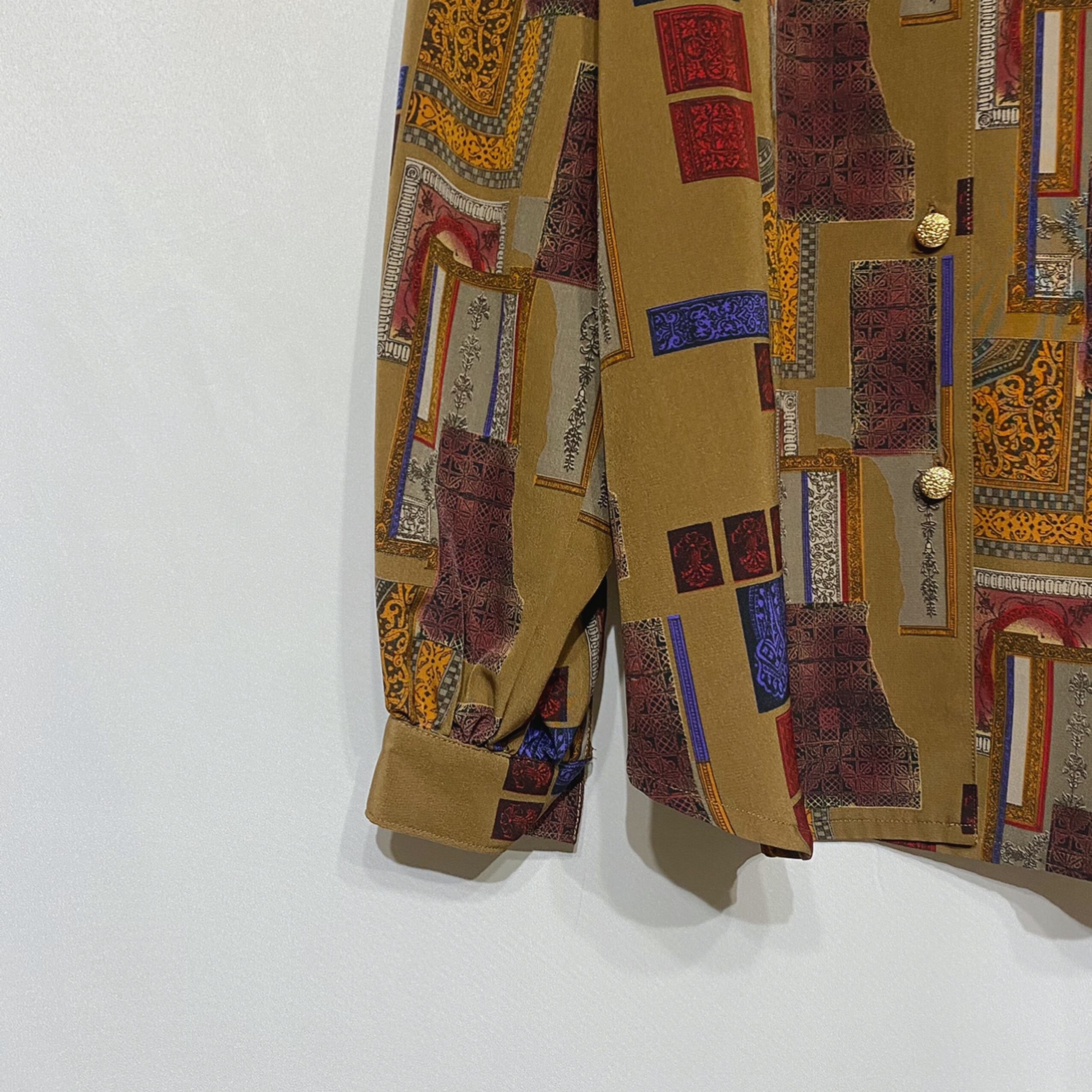 古着屋 レトロ アート柄 金ボタン ヨーロピアン 開襟 柄シャツ