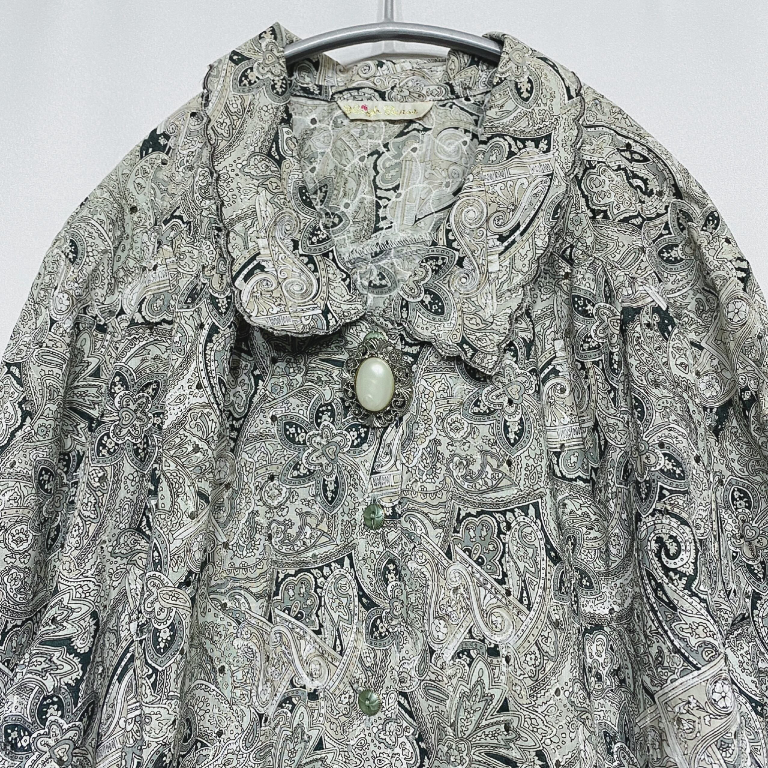 古着屋 レトロ ペイズリー 総柄 カットワーク襟 ブラウス