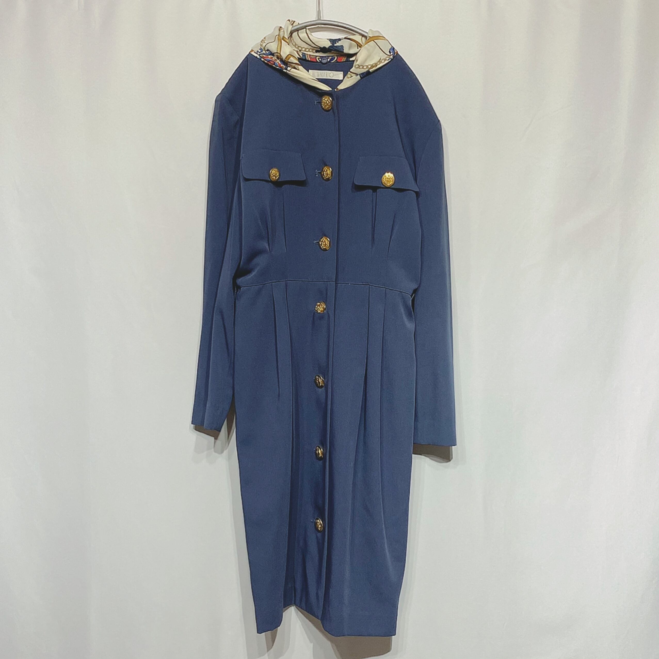 古着屋 昭和レトロ スカーフ バブリー 金ボタン ワンピース