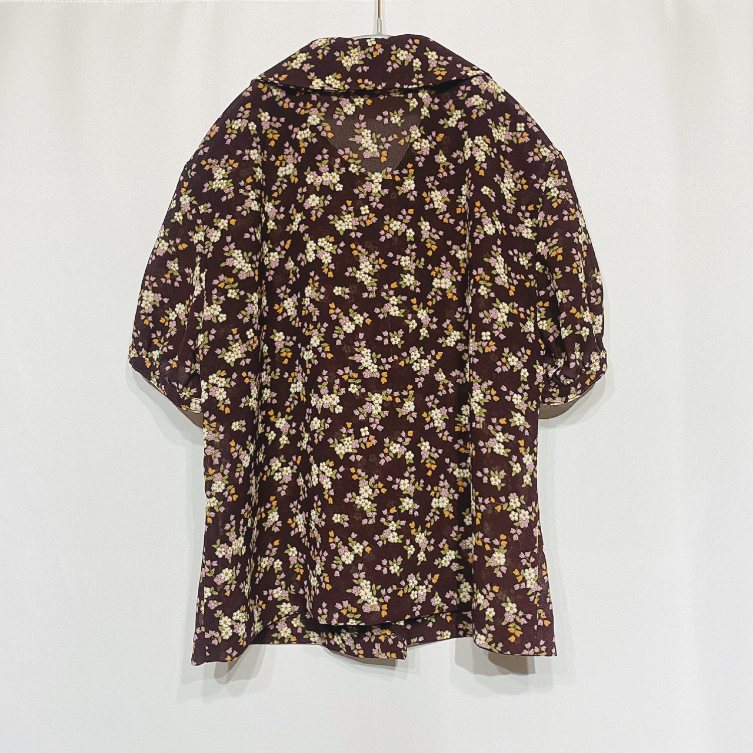 古着屋 レトロ 花柄 ブラウス ブラウン