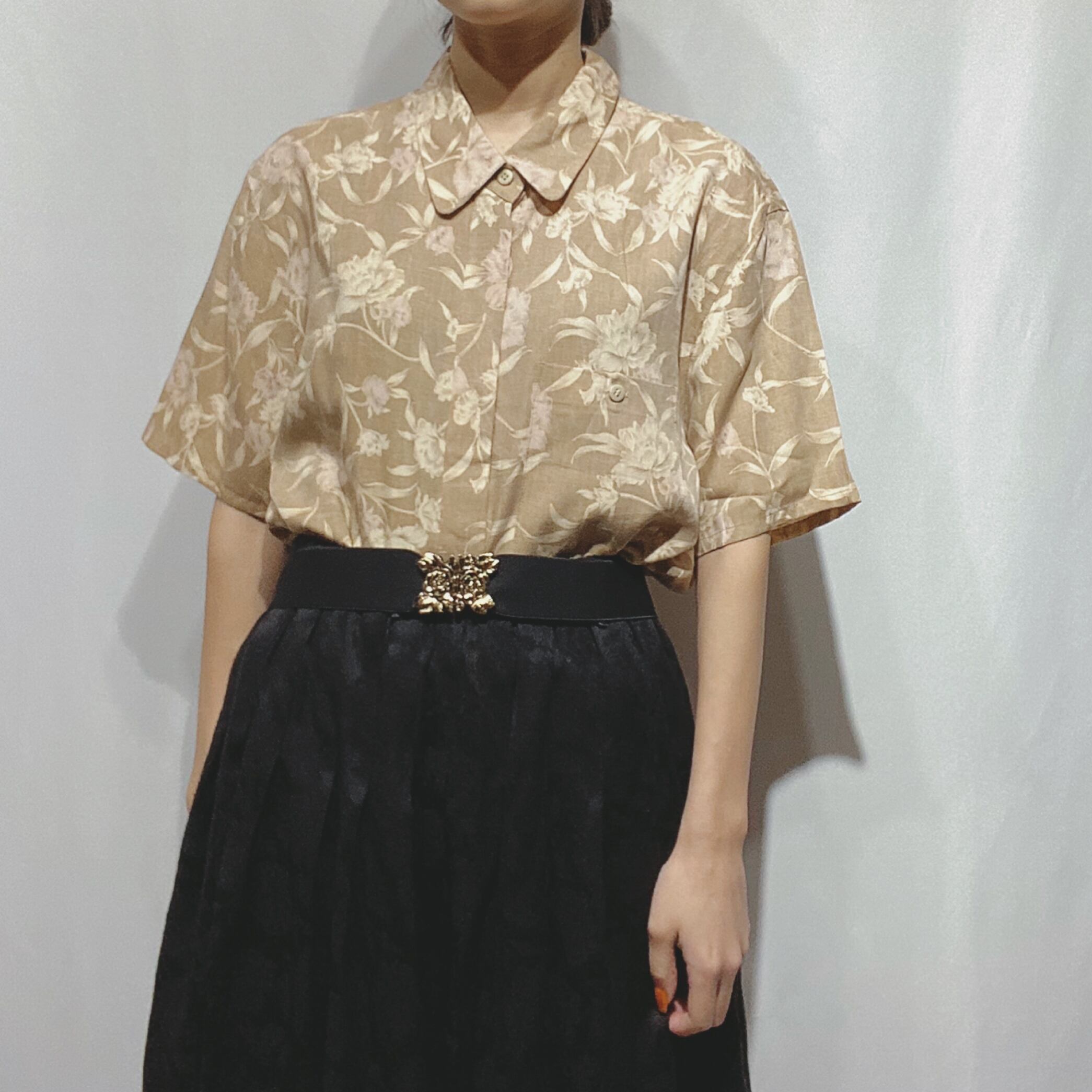 古着屋 レトロ 花柄 麻混 ブラウス 柄シャツ