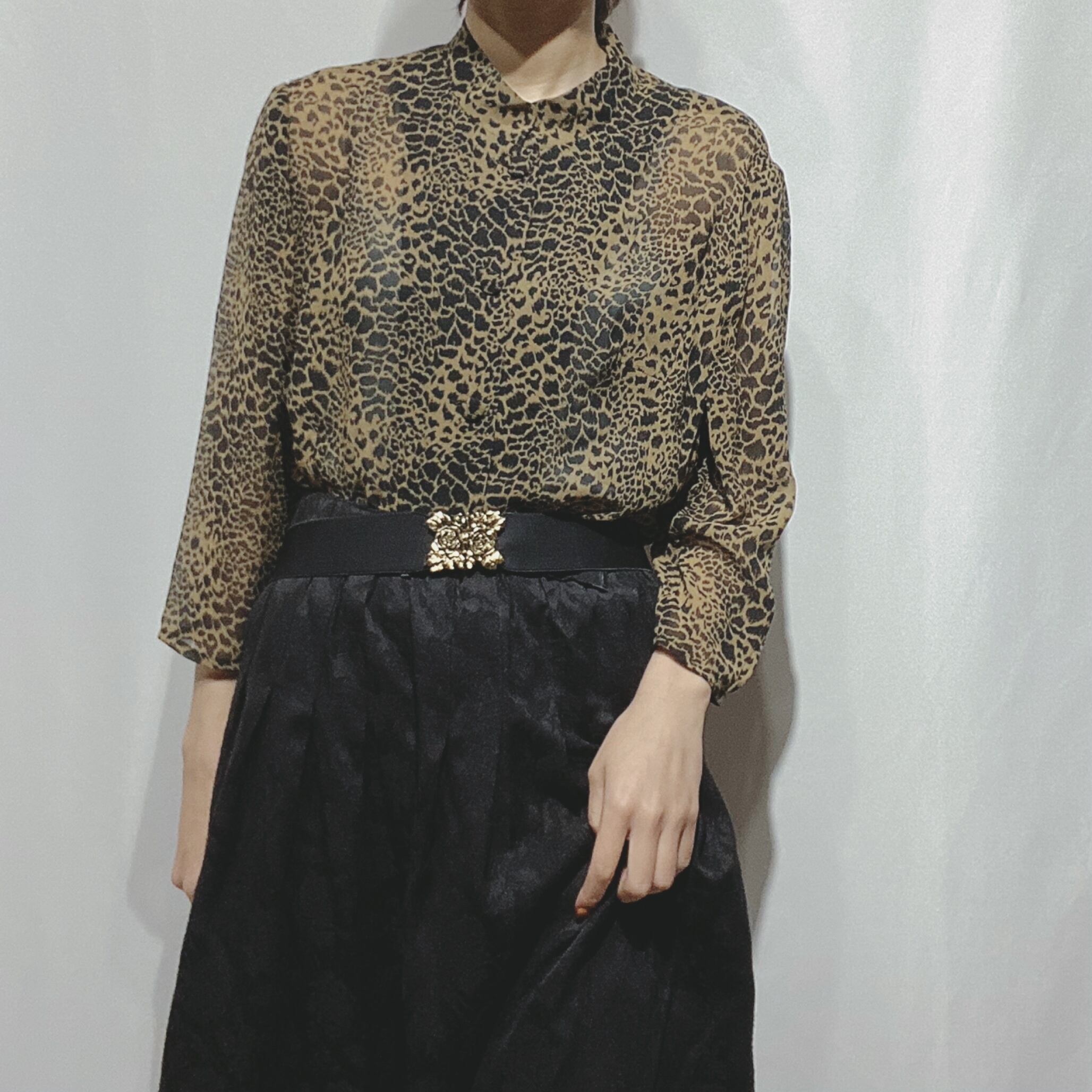古着屋 レトロ シルク 豹柄 レオパード シアーブラウス