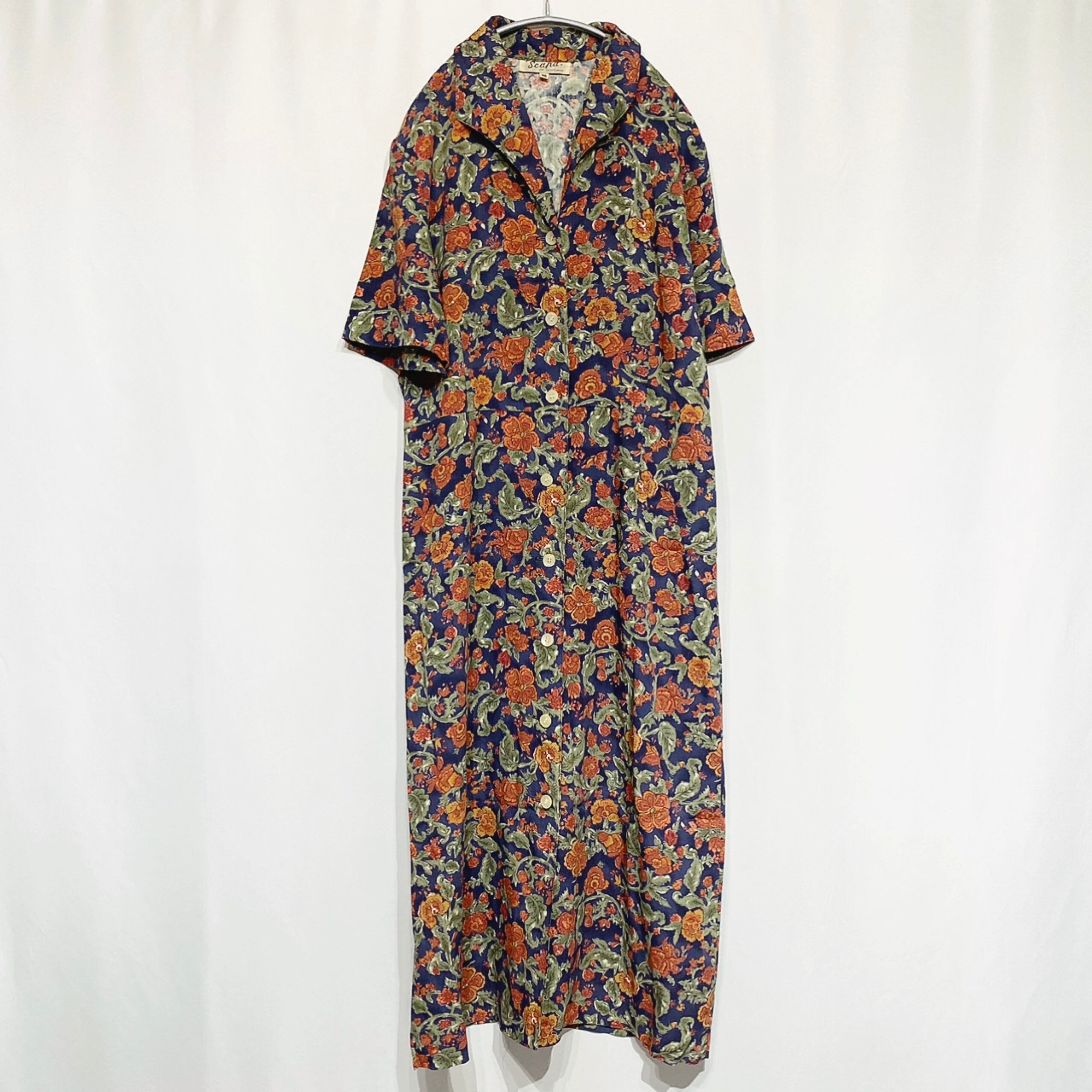 古着屋 vintage レトロ ボタニカル 花柄 開襟 ワンピース