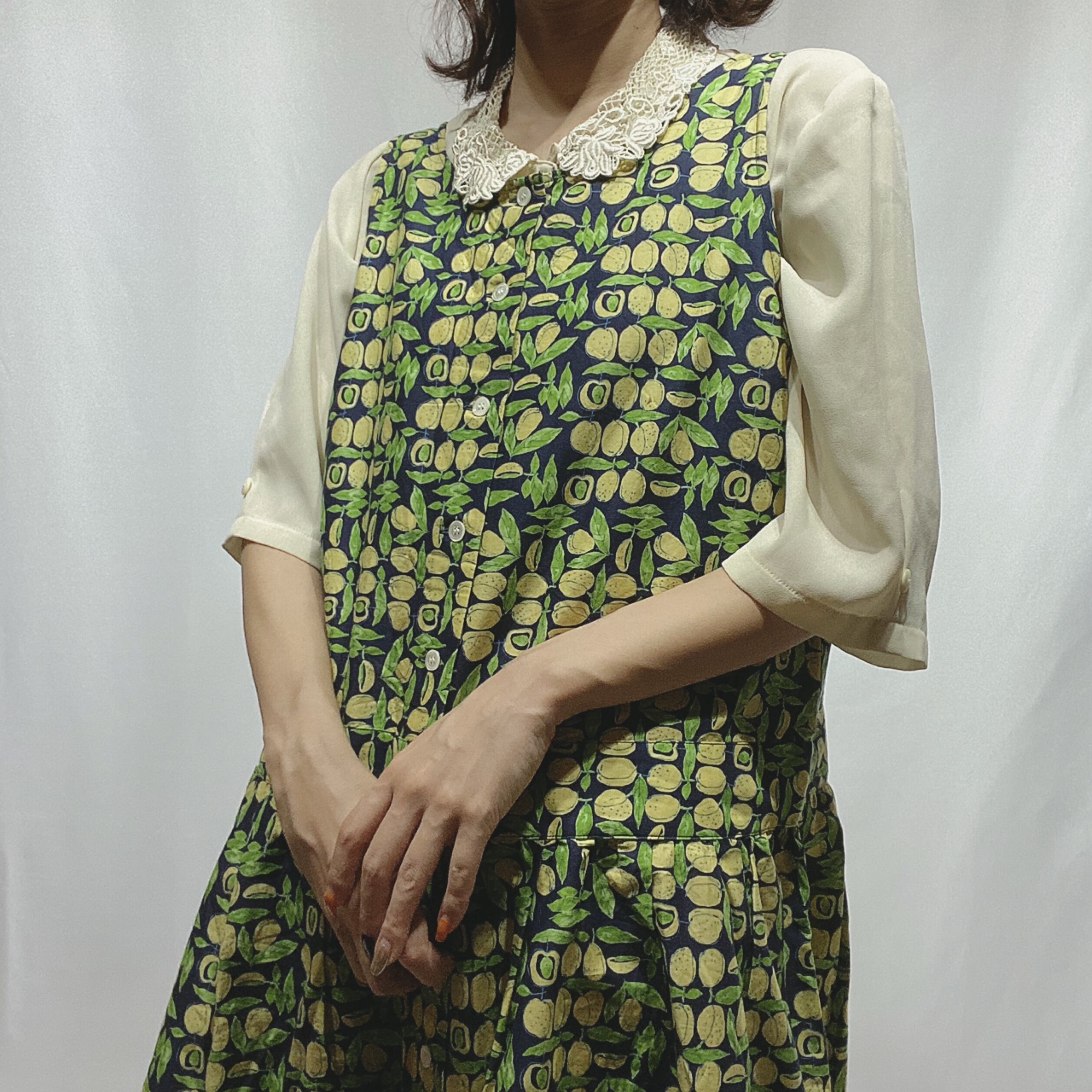 古着屋 レトロ フルーツ柄 ワンピース 総柄