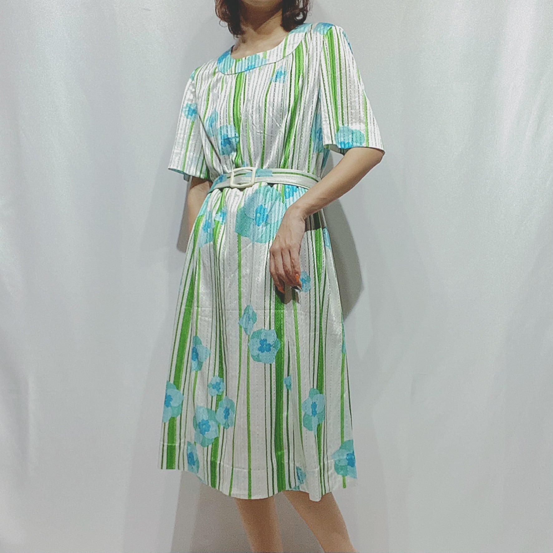 古着屋 昭和レトロ 花柄 ワンピース ベルト付