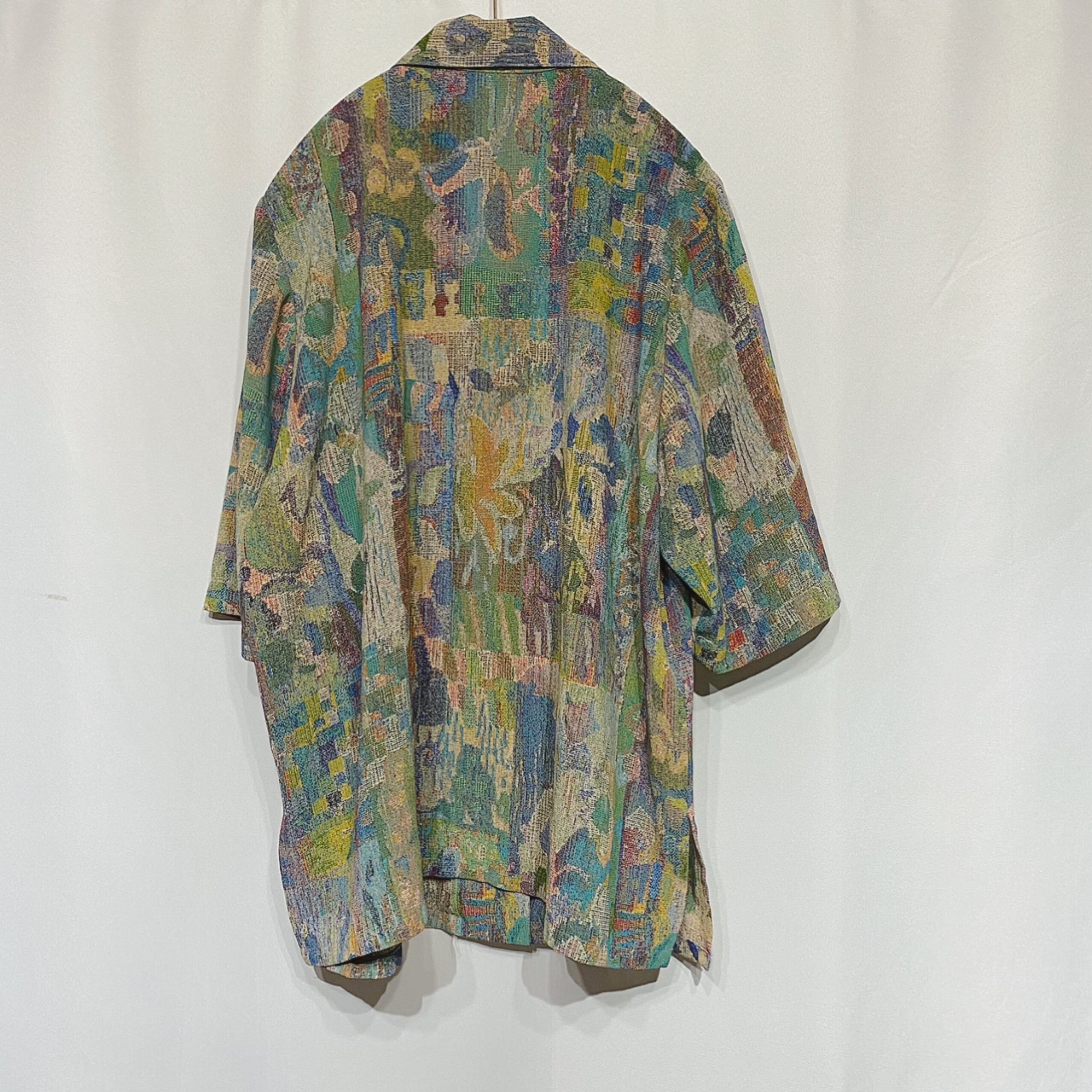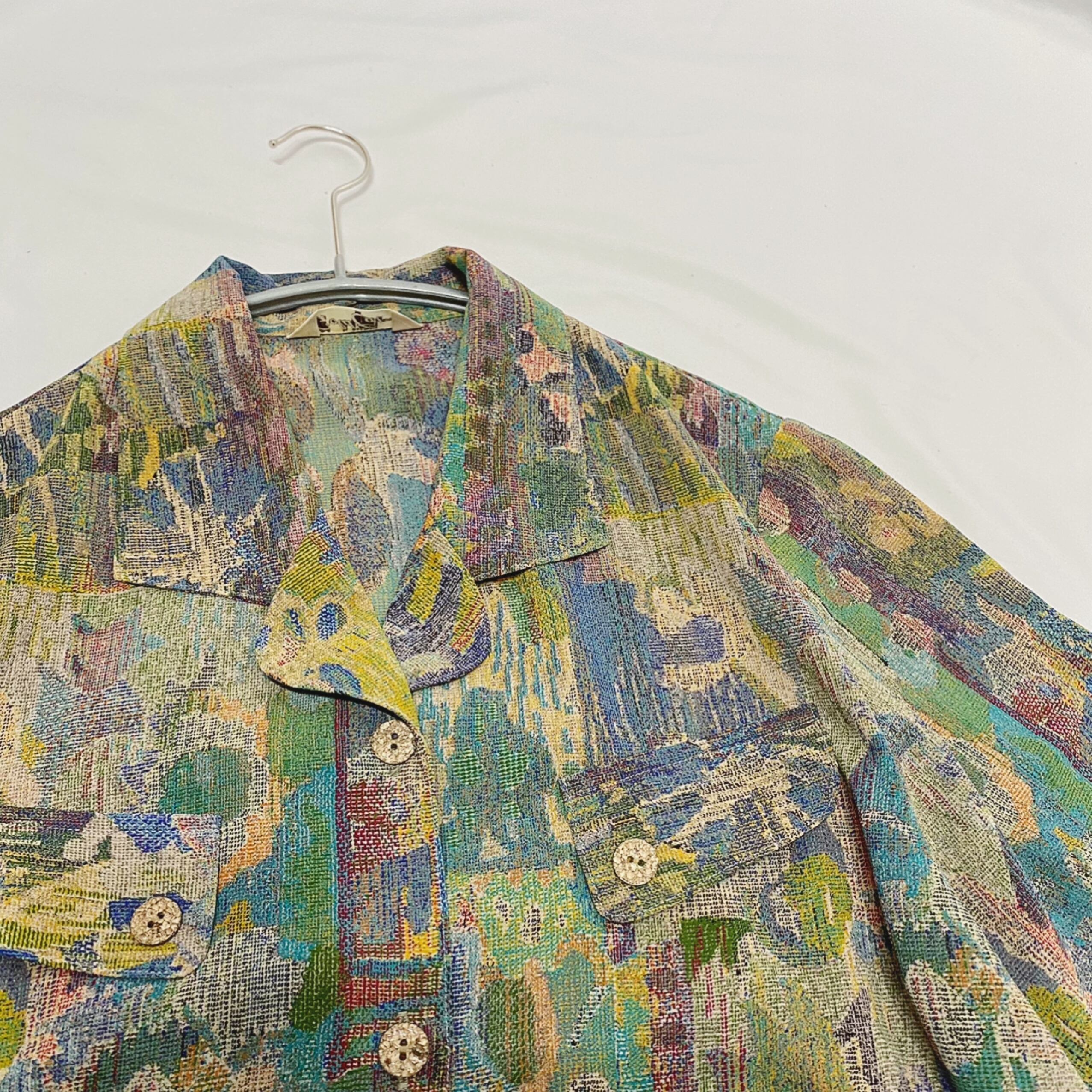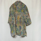 古着屋 昭和レトロ マルチカラー 総柄 柄シャツ 開襟 ブラウス