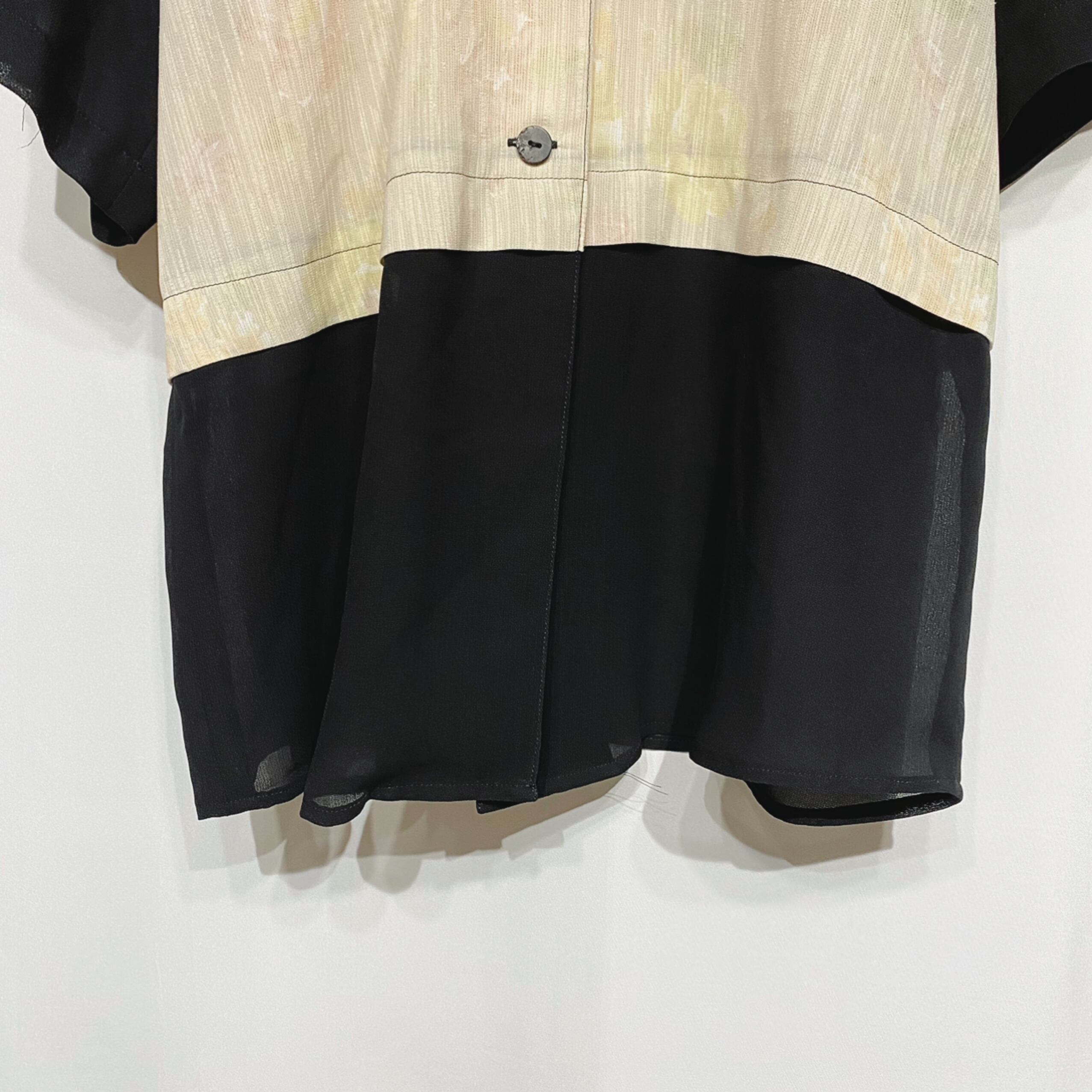 古着屋 昭和レトロ バイカラー 花柄 柄シャツ ブラウス