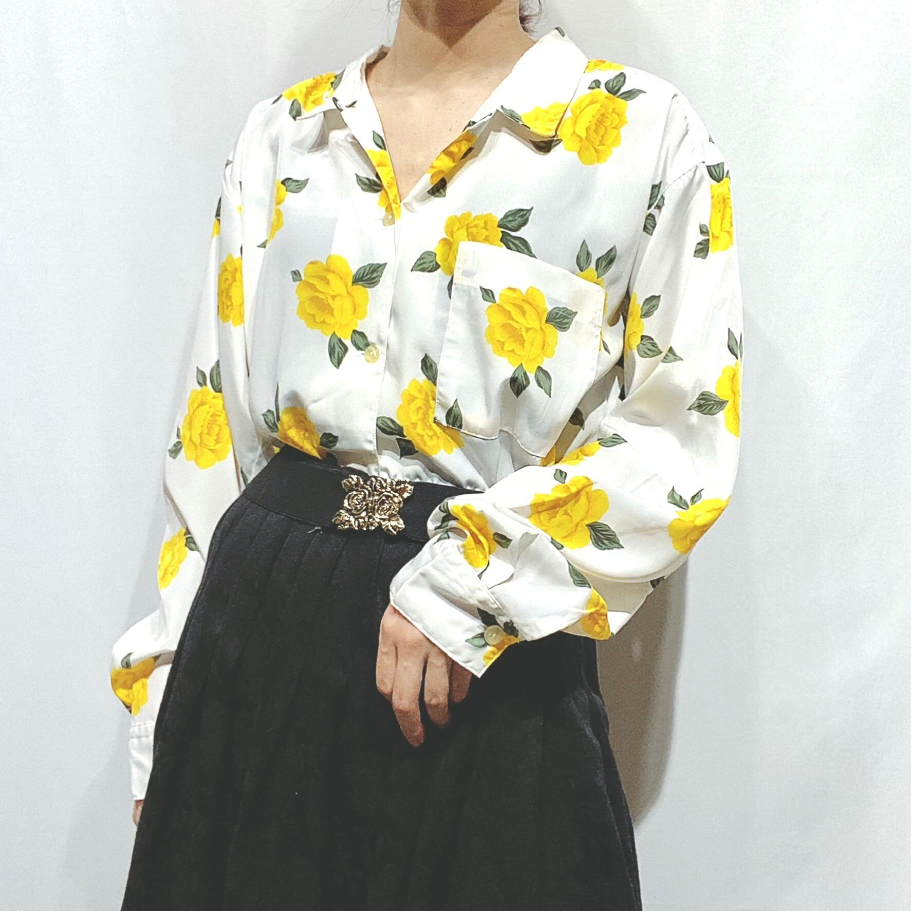 レモンイエローの薔薇柄が爽やかなブラウス◎