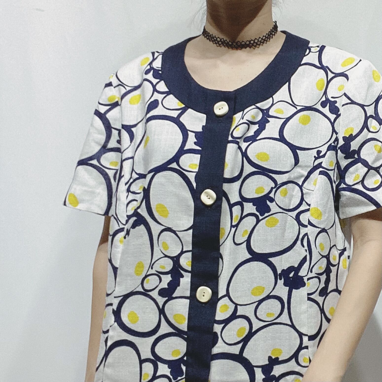 古着屋 昭和レトロ パイピング レトロ柄 モッズワンピース