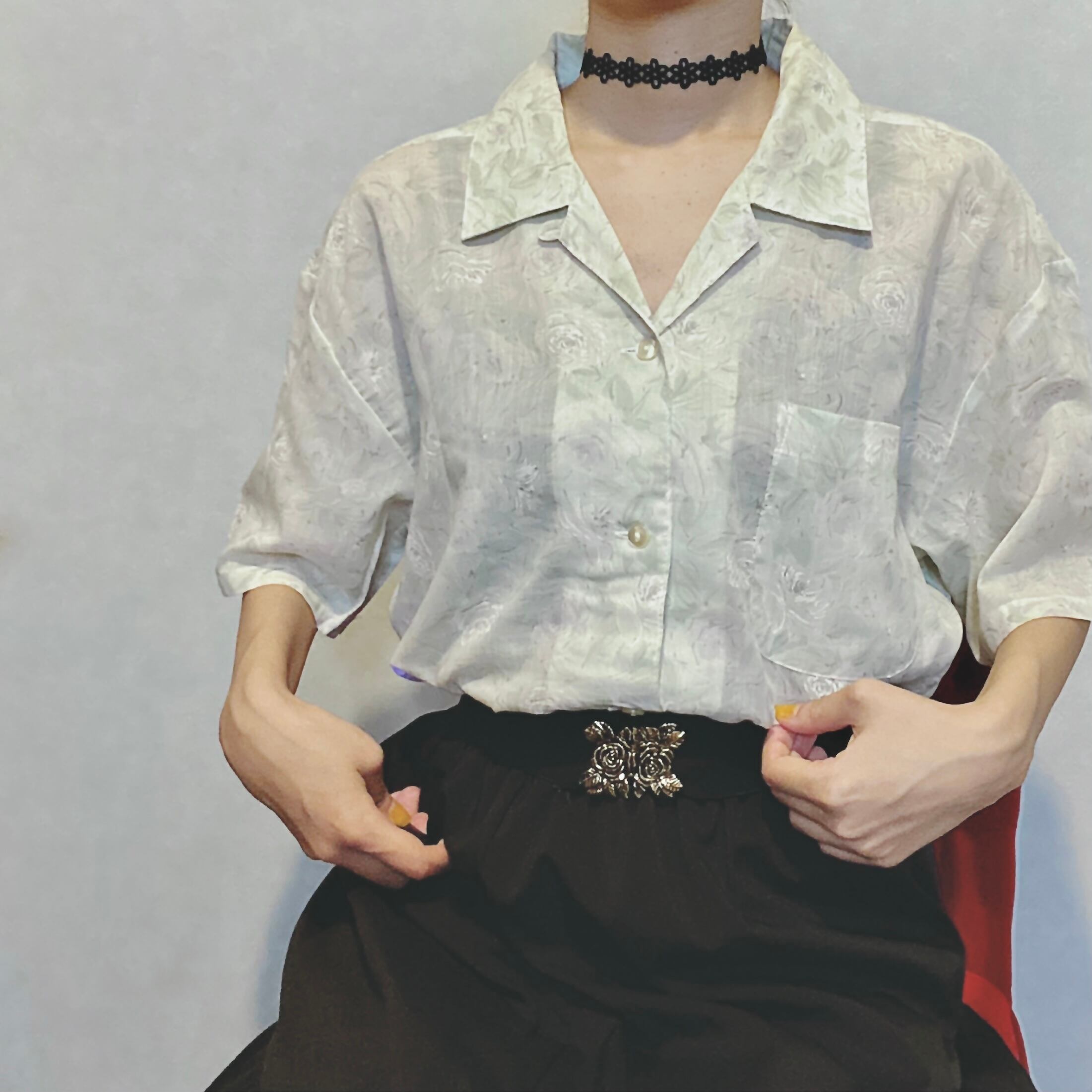古着屋 レトロ 花柄 薔薇柄 総柄 シャーベットカラー ブラウス