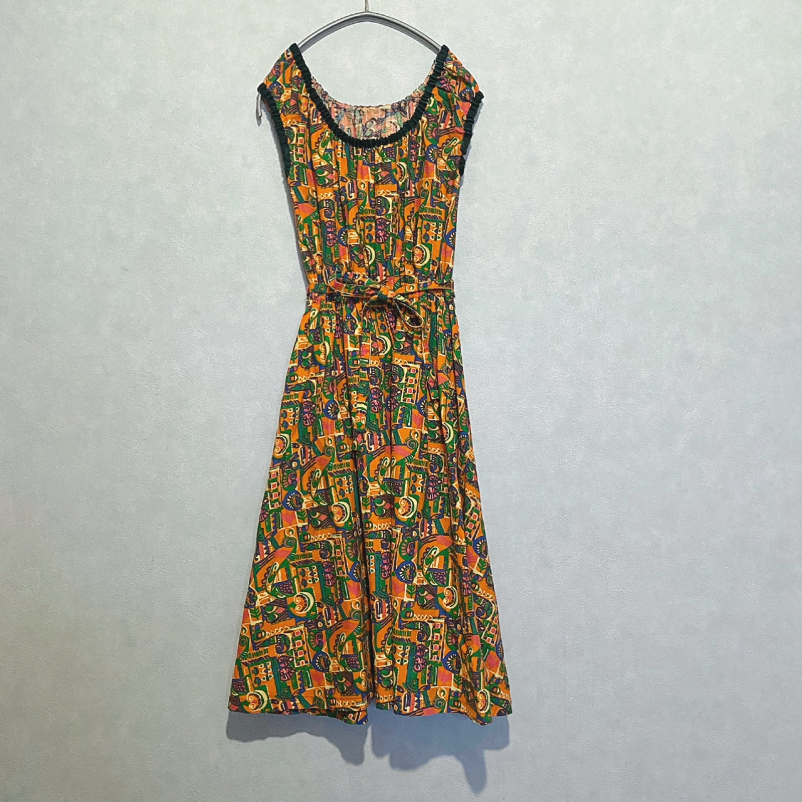 古着屋 レトロ 総柄 サイケ アジアン ワンピース