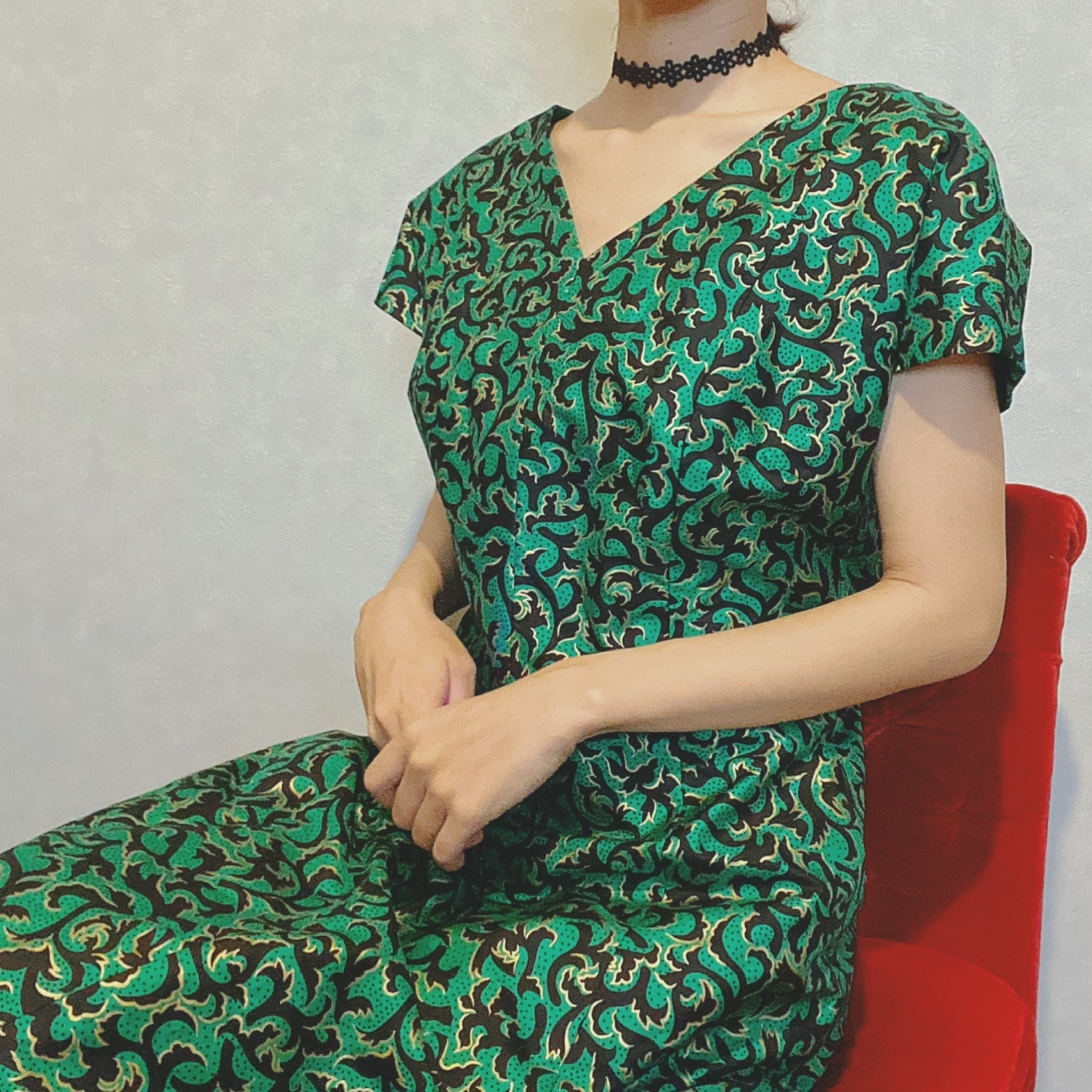 古着屋 vintage レトロ 総柄 ドレス ワンピース