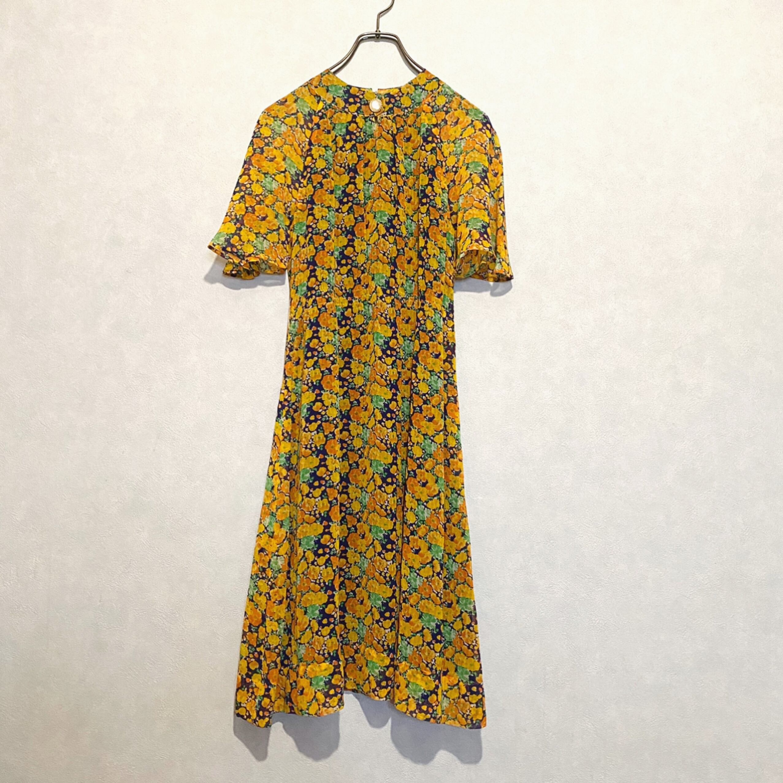 古着屋 レトロ 花柄 バンドカラー オレンジ ワンピース