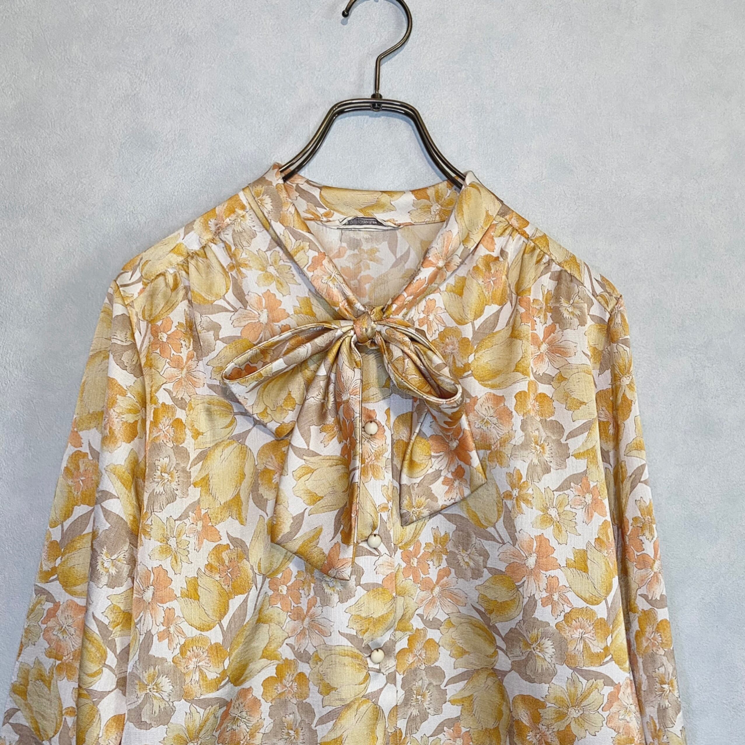 古着屋 昭和レトロ 花柄 リボンタイ アンティーク ブラウス