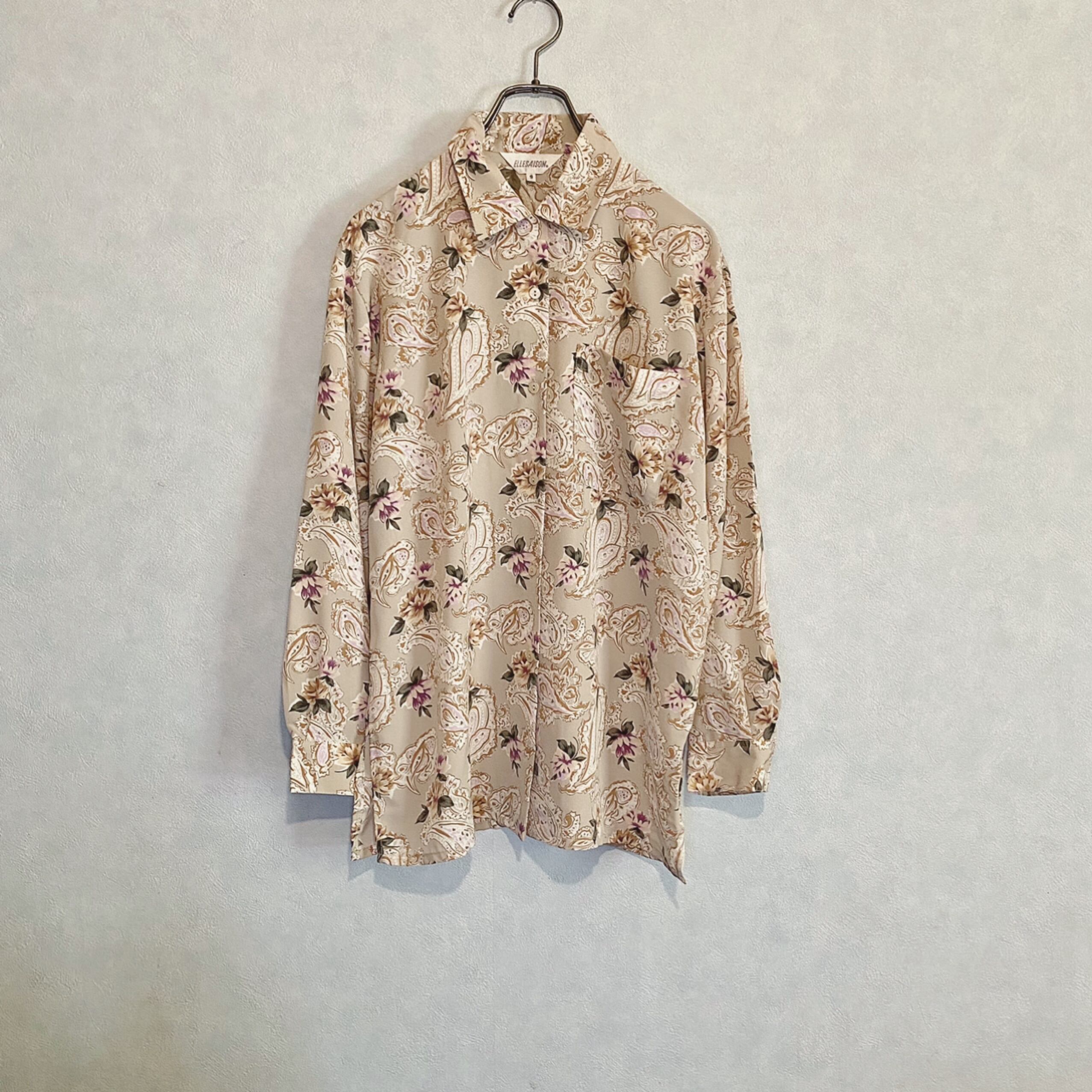 ベージュにペイズリーとお花の柄が可愛いブラウス◎