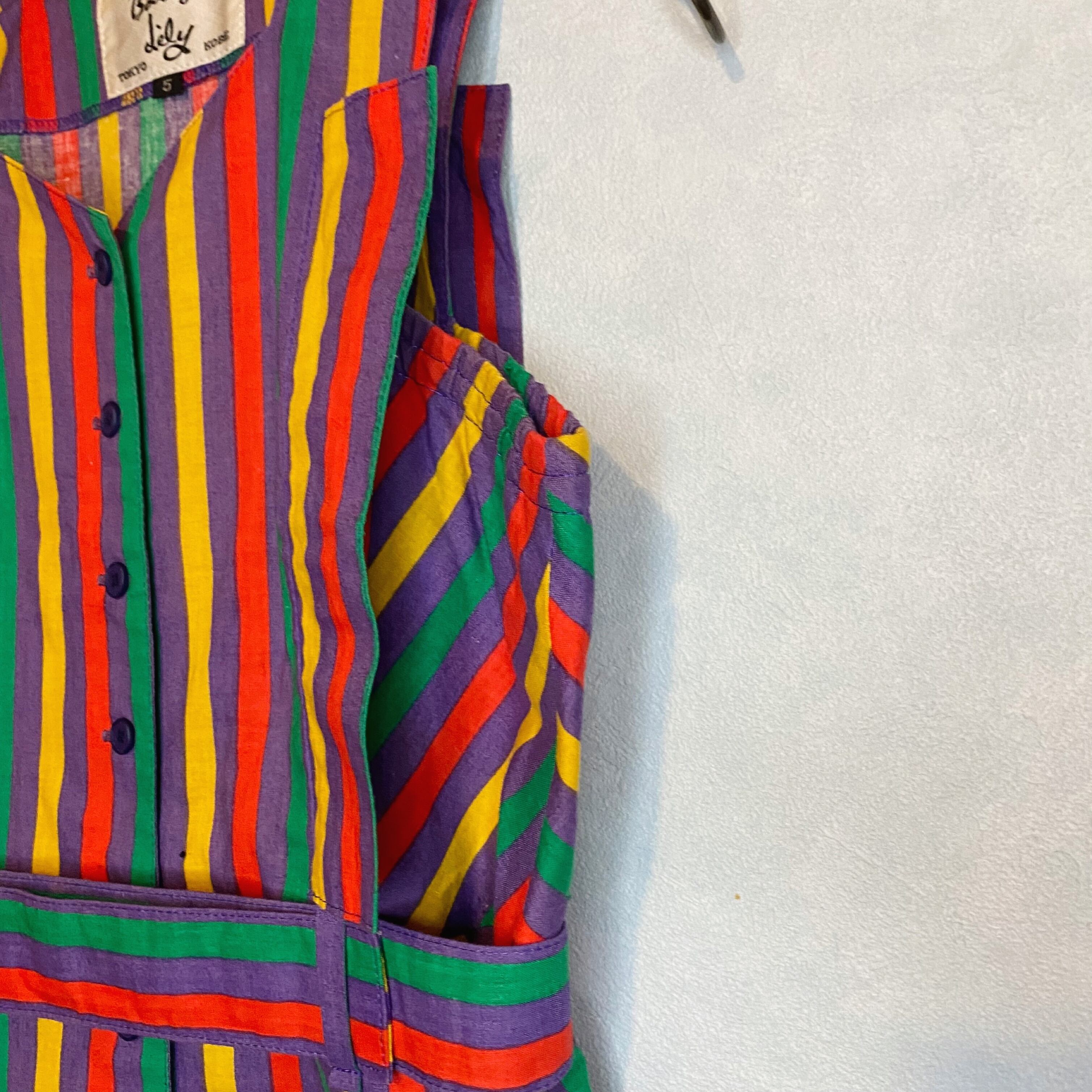 古着屋 vintage レトロ マルチカラー ストライプ ワンピース