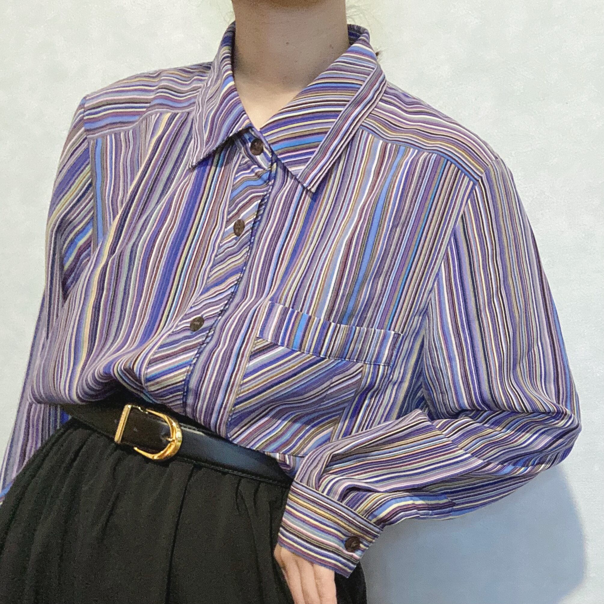 古着屋 レトロ マルチカラー ストライプ 柄シャツ ブラウス