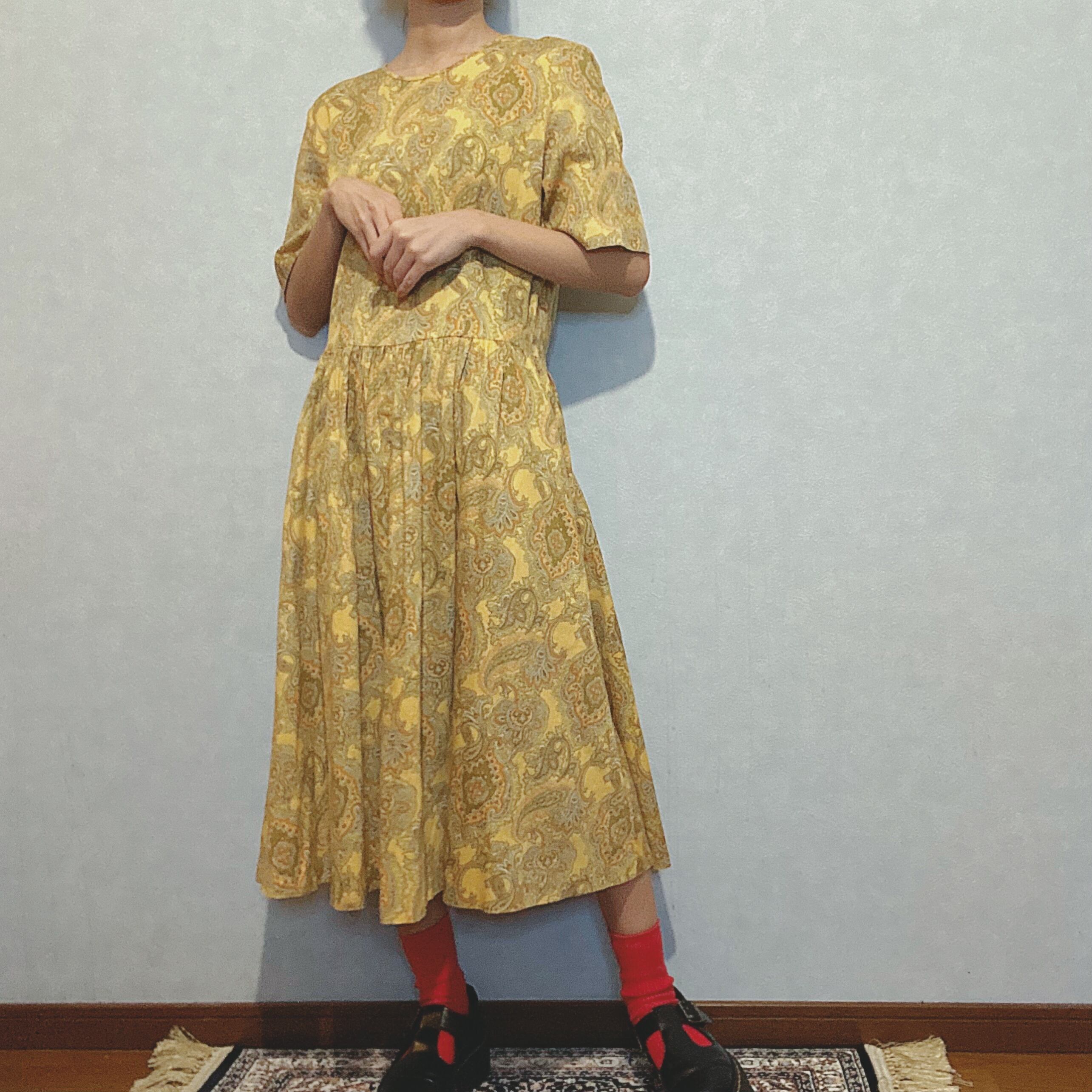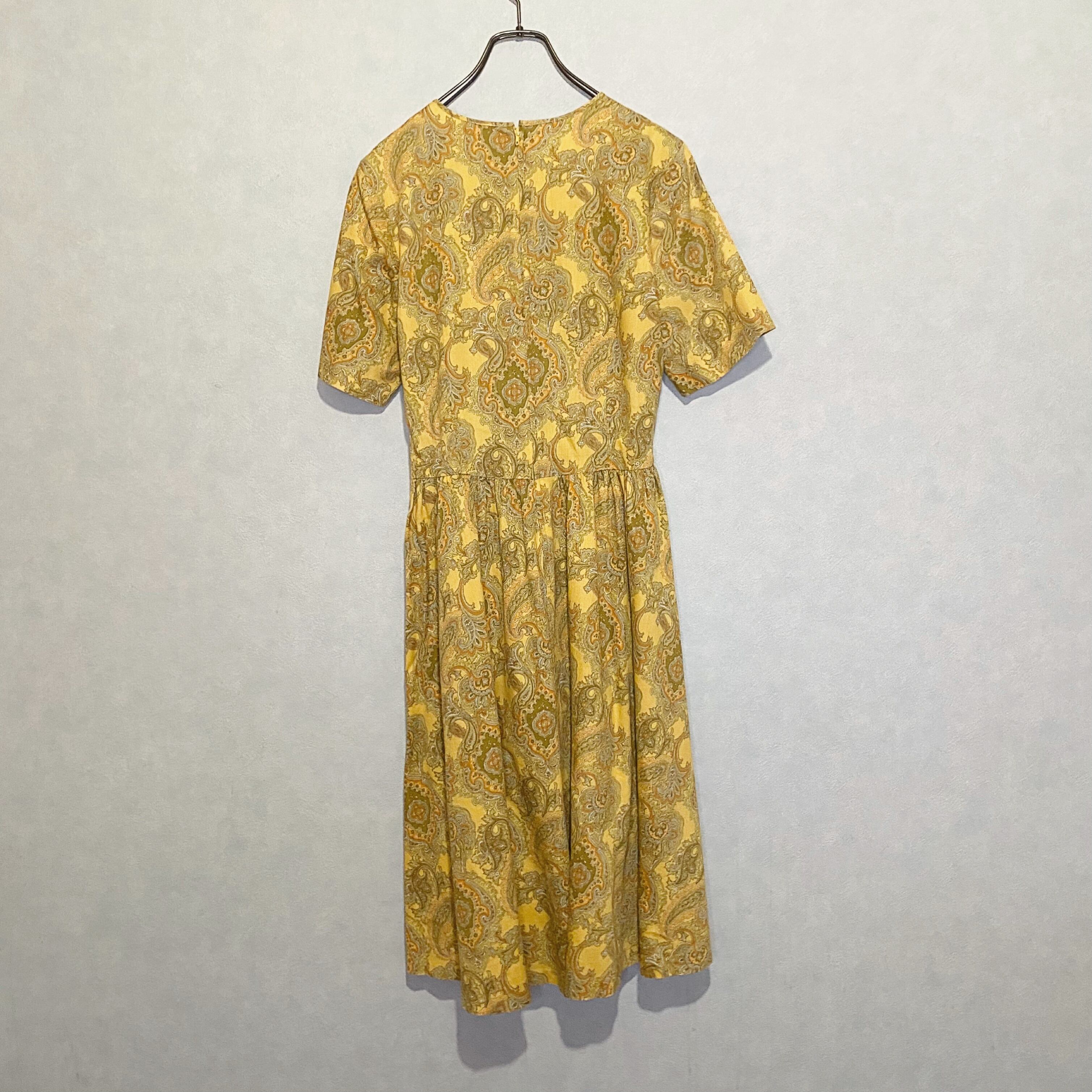 古着屋 レトロ ペイズリー 総柄 ノーカラー ワンピース
