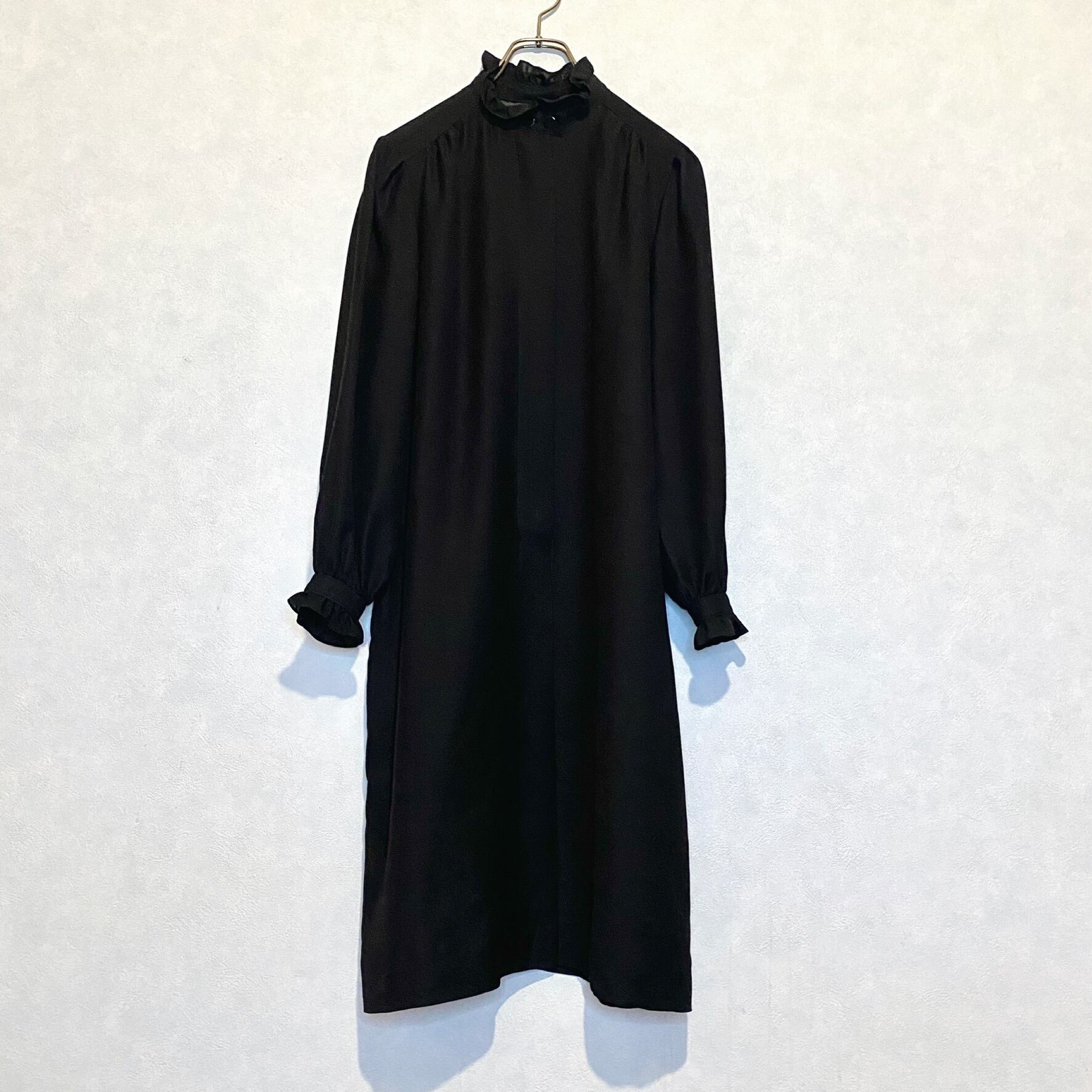 ヴィンテージ クラシカルレトロ 古着 シンプル フリル ブラック ワンピース