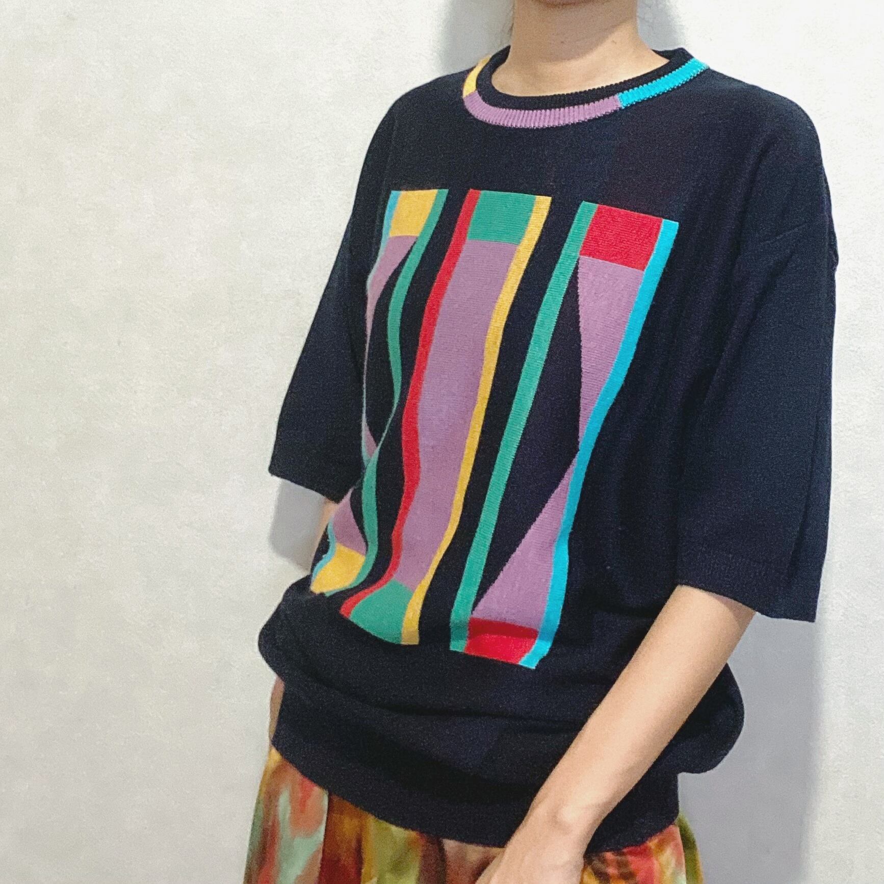 ヴィンテージ 古着 レトロ コットン アクリル 半袖ニット