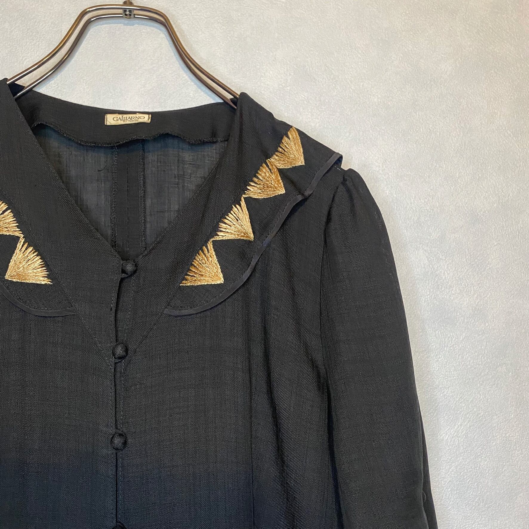 ヴィンテージ レトロ 古着 刺繍 ワンピース ブラック