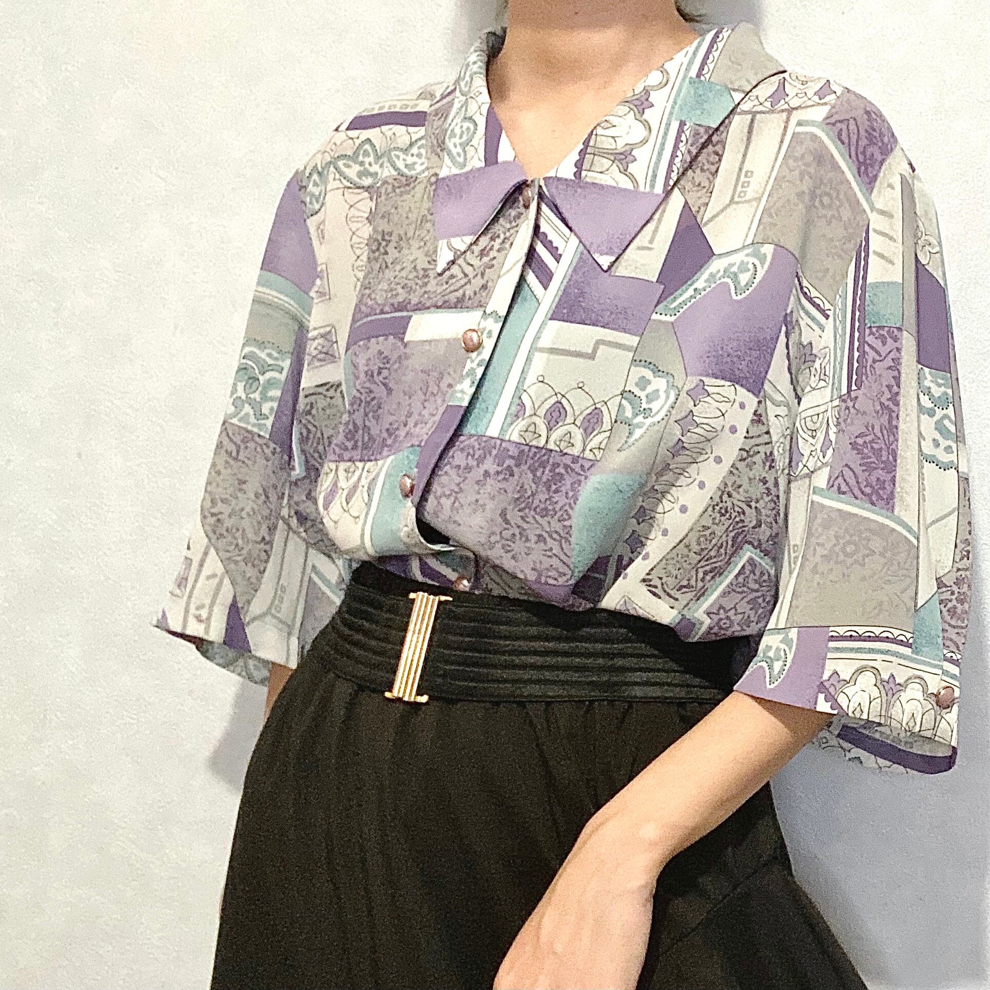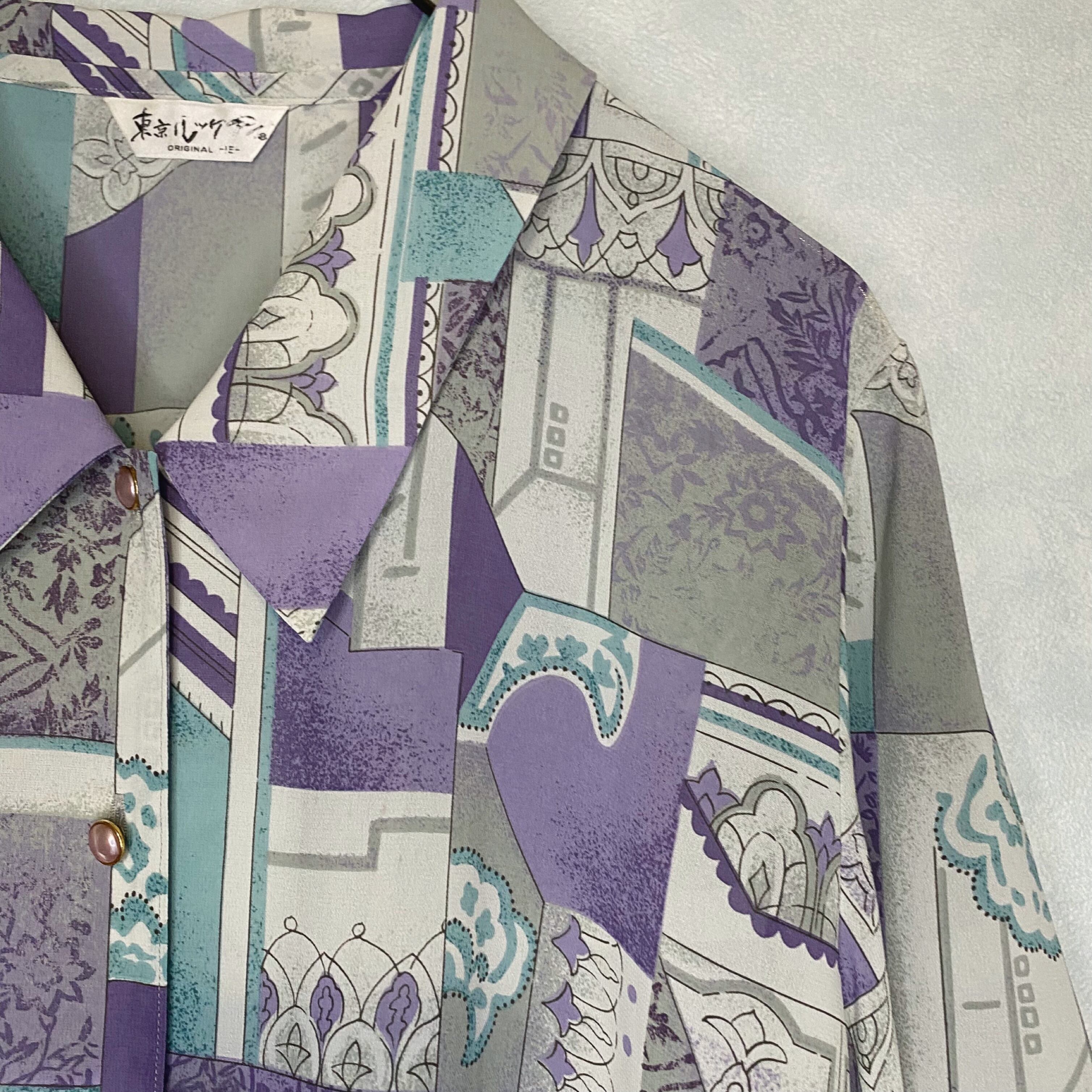 ヴィンテージ 古着 レトロ 総柄 柄シャツ ブラウス