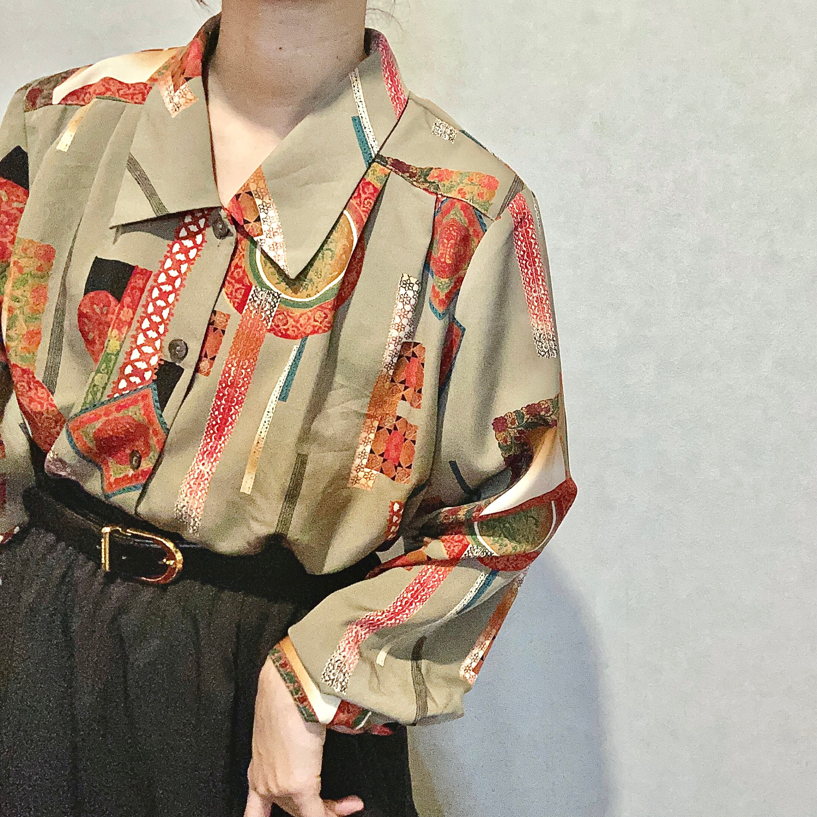 古着 ヴィンテージ レトロ 昭和レトロ とろみ 柄シャツ 総柄 オリエンタル
