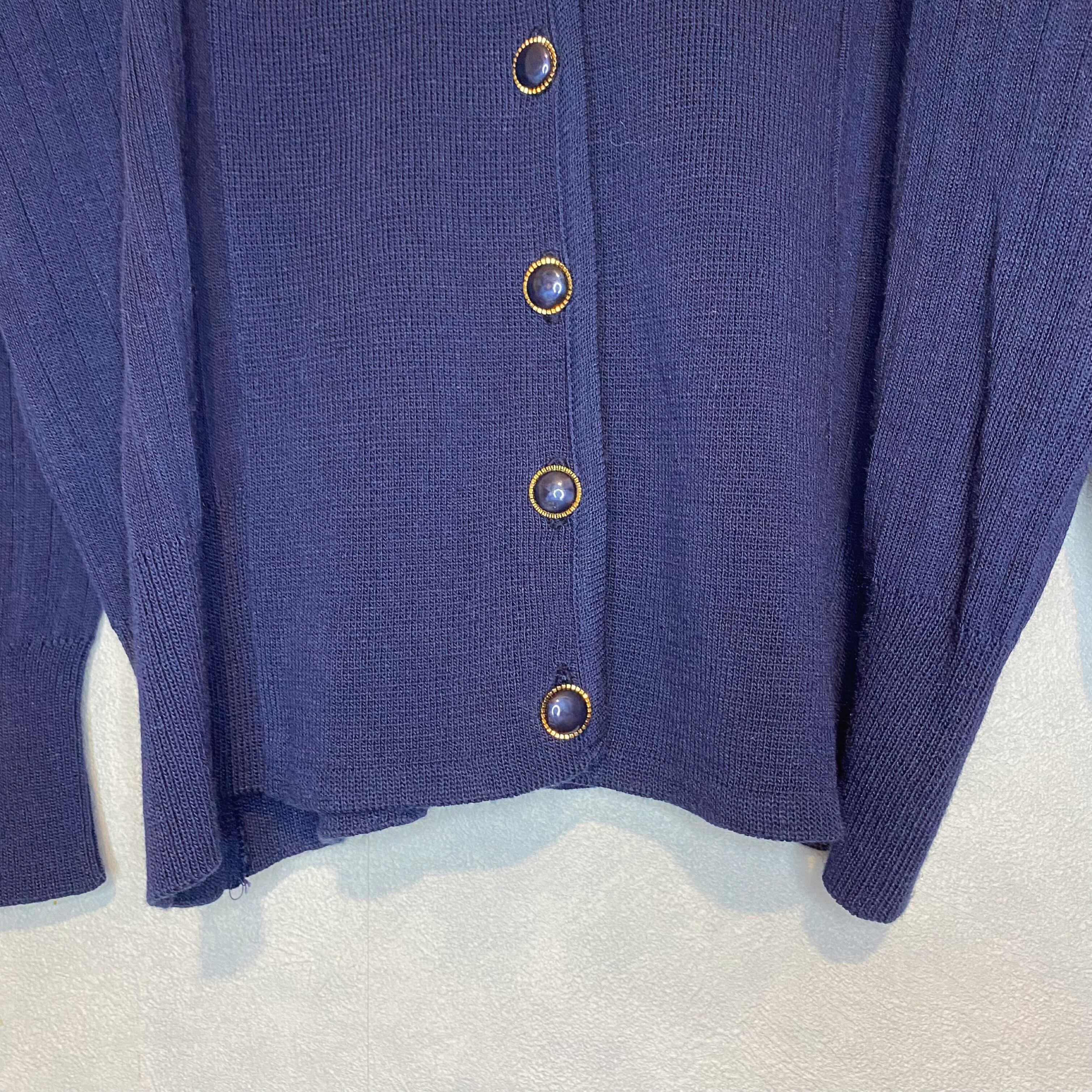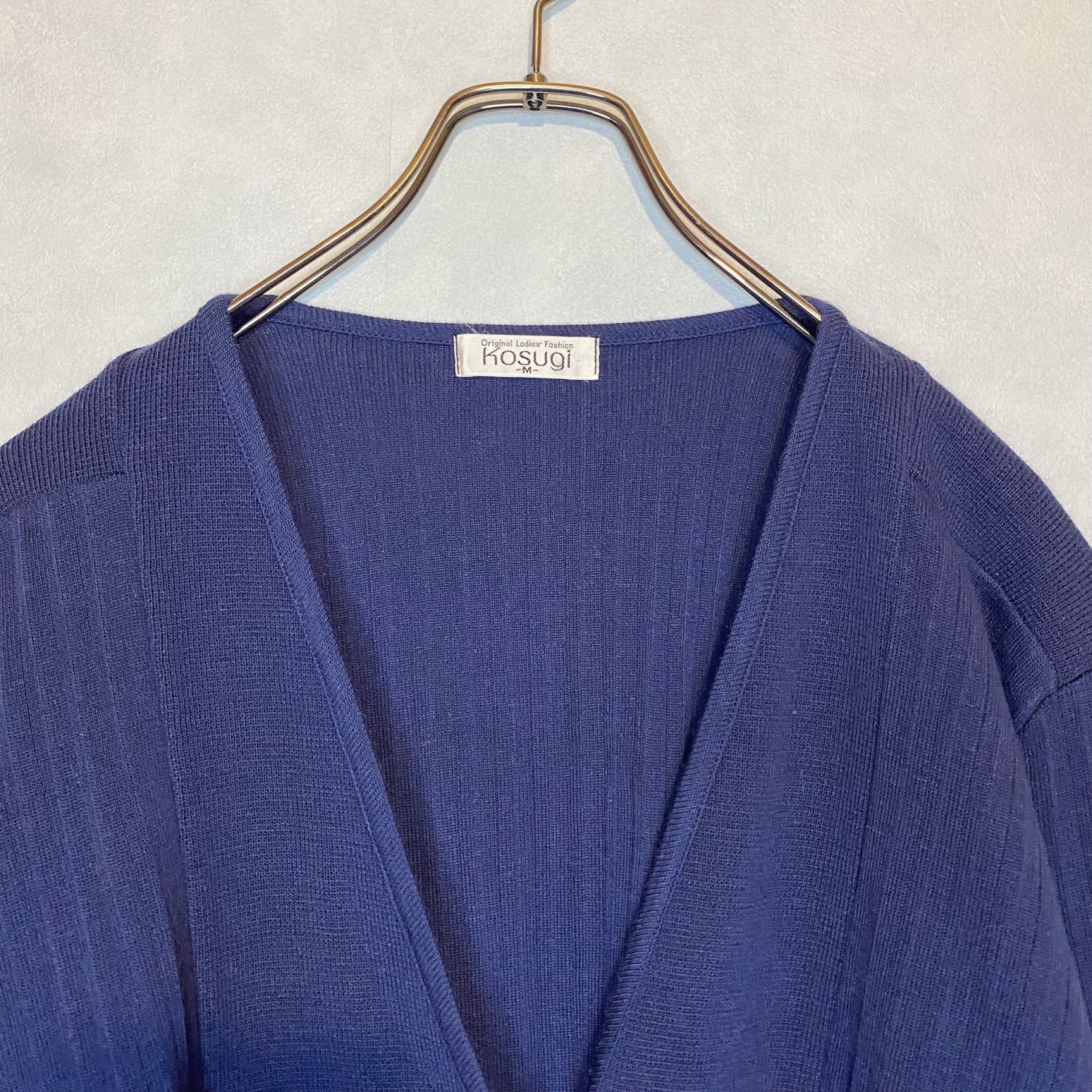 古着 レトロ ヴィンテージ 麻混 シンプル ネイビー カーディガン