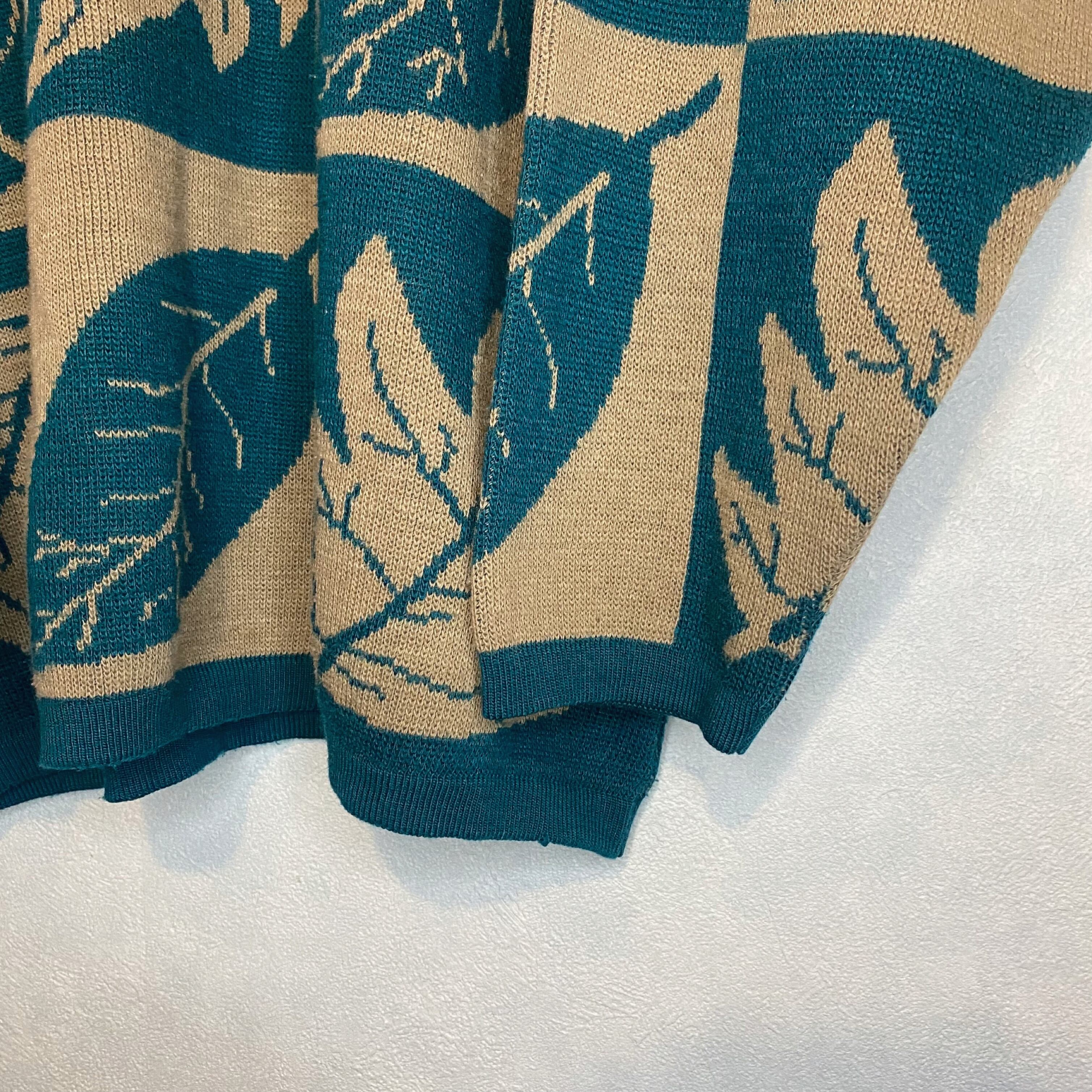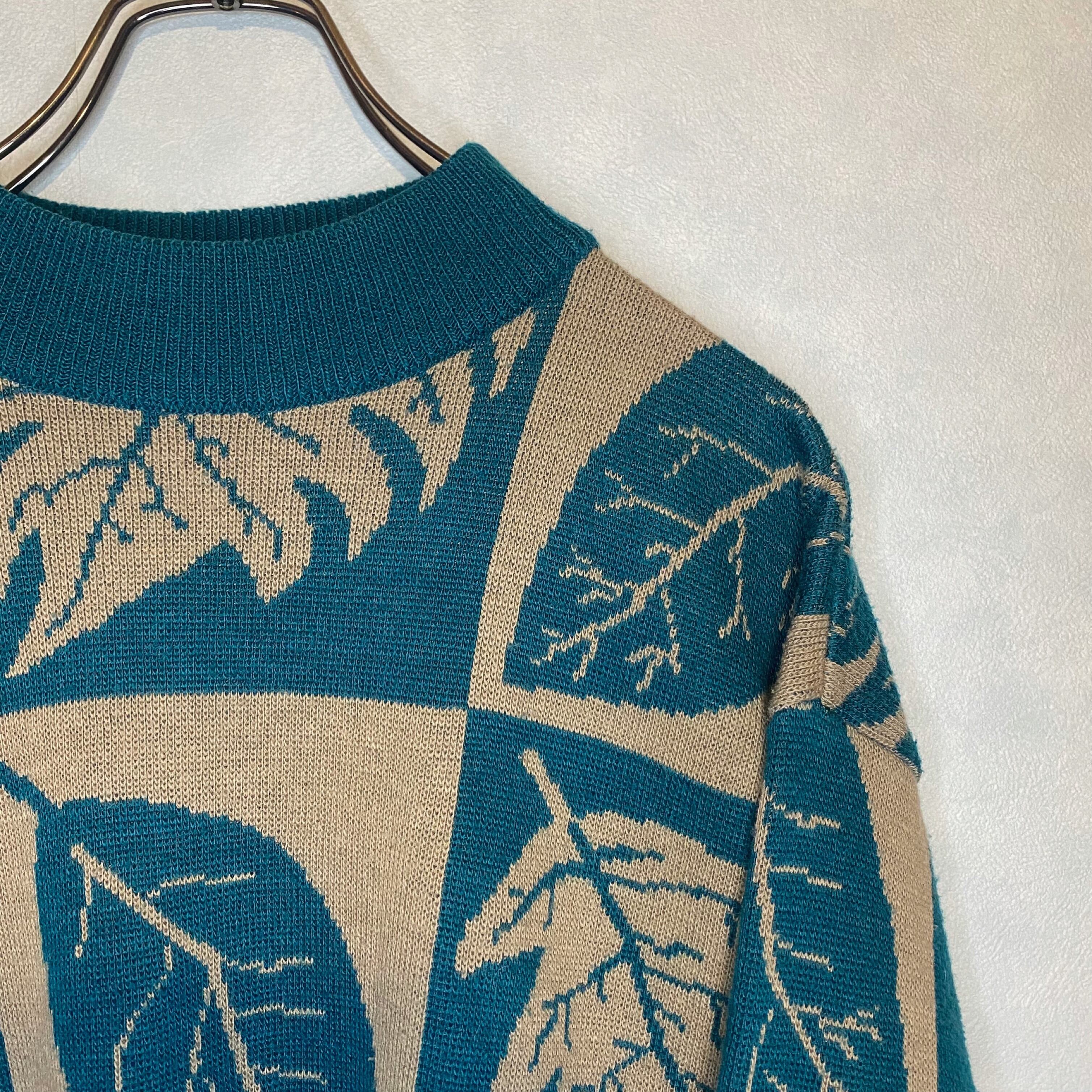 ヴィンテージ レトロ 古着 葉っぱ柄 オーバーサイズ ハイネックニット セーター