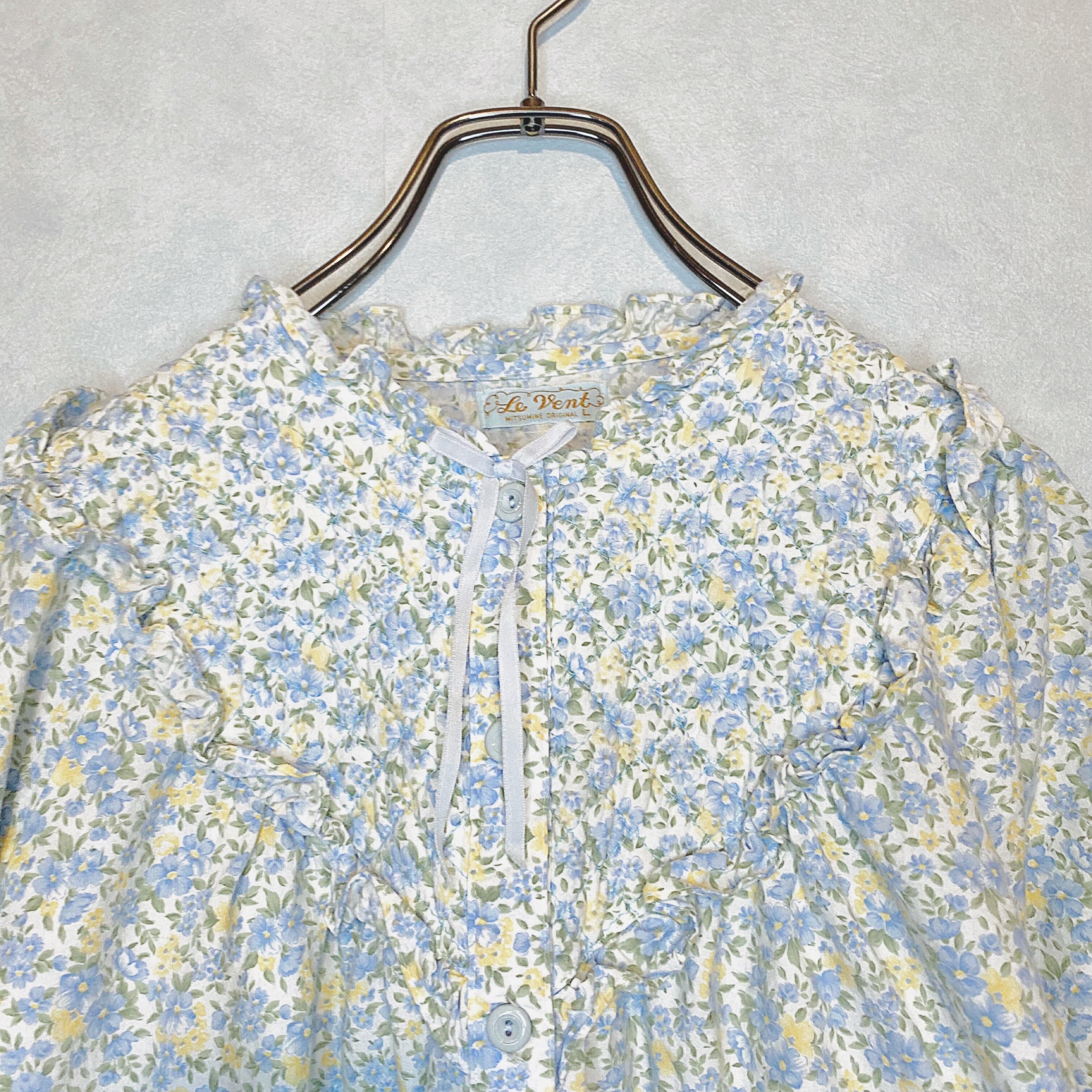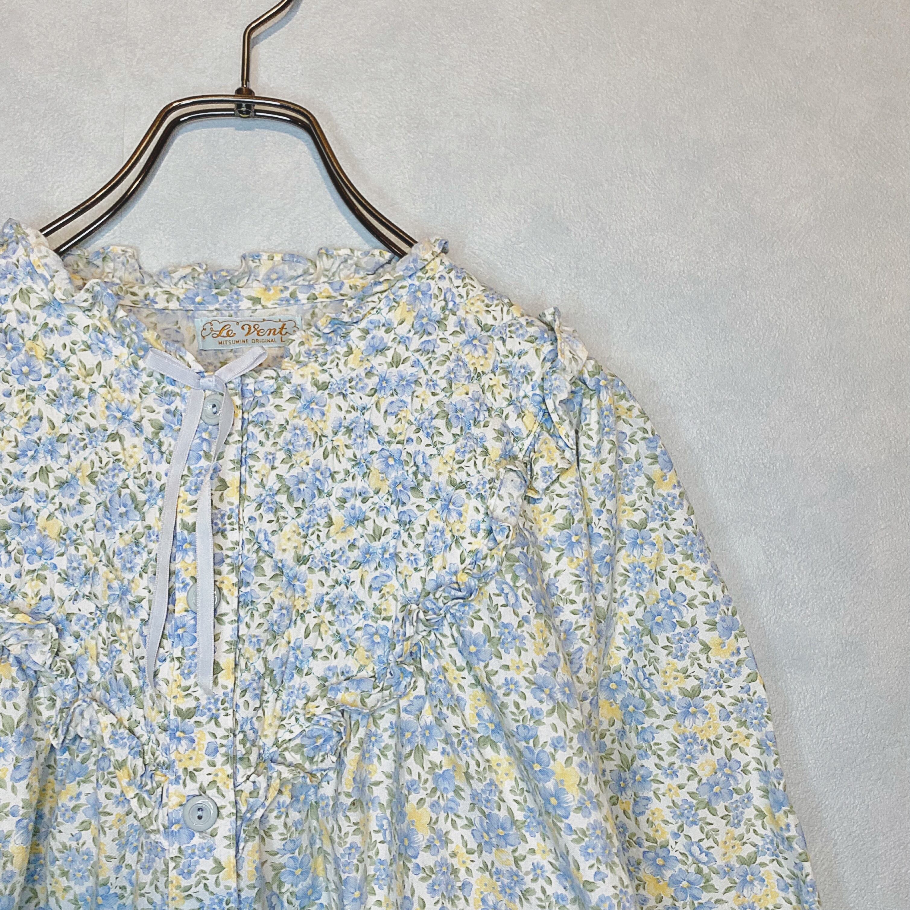古着 ヴィンテージ レトロ 花柄 フリル 前開き ワンピース