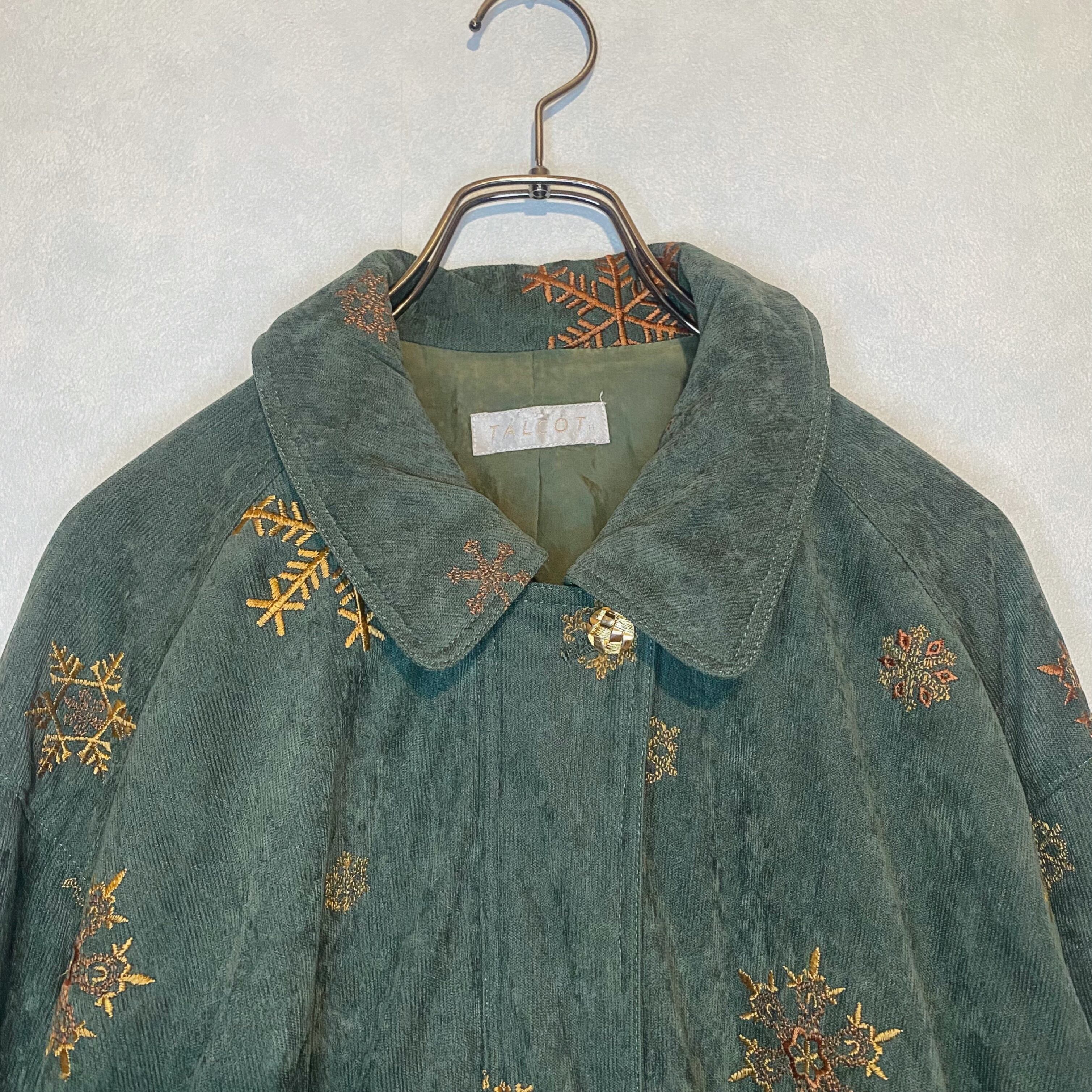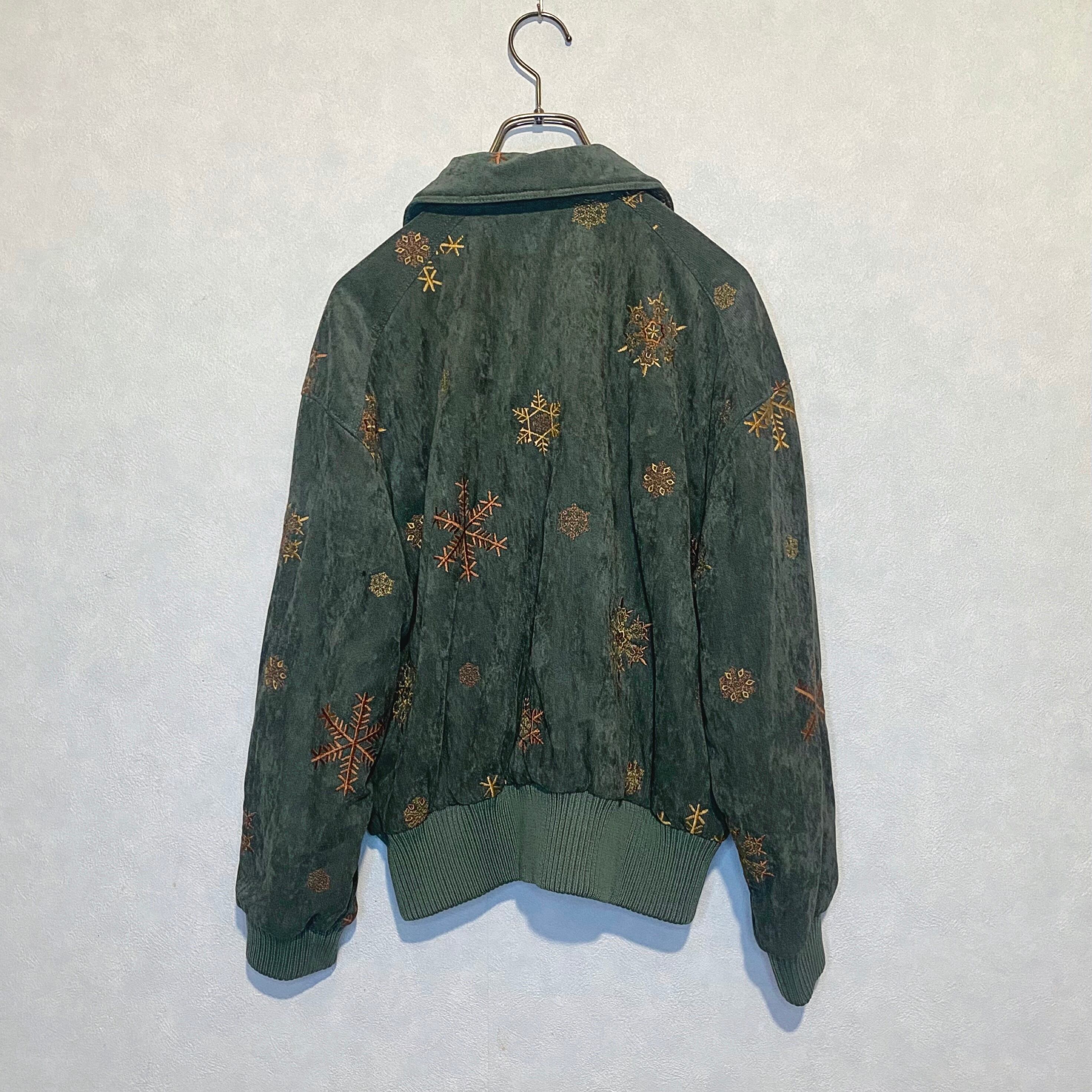 古着 レトロ vintage ノルディック柄 コーデュロイ くすみ緑 ブルゾン