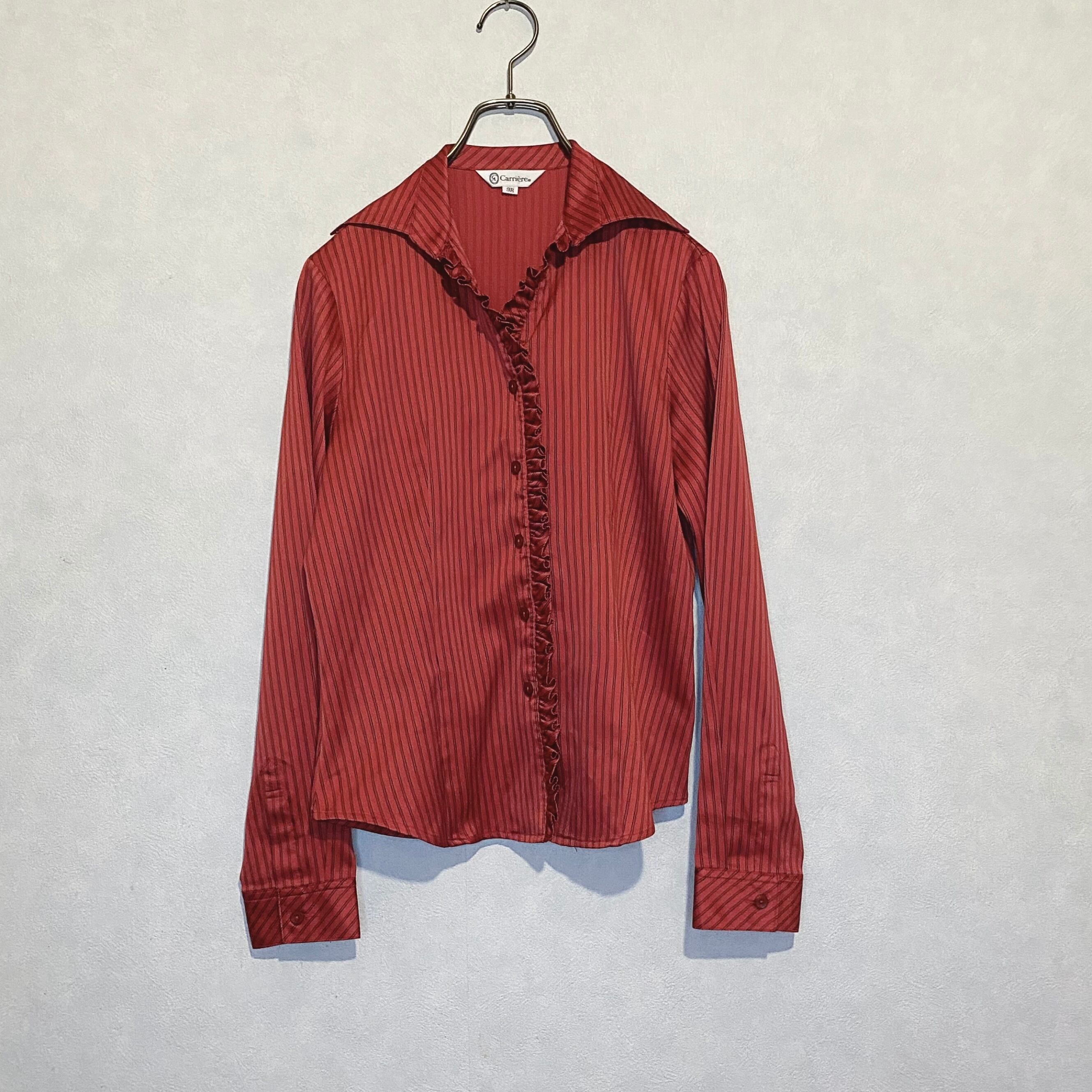 古着 ヴィンテージ 昭和レトロ ストライプ フリルブラウス