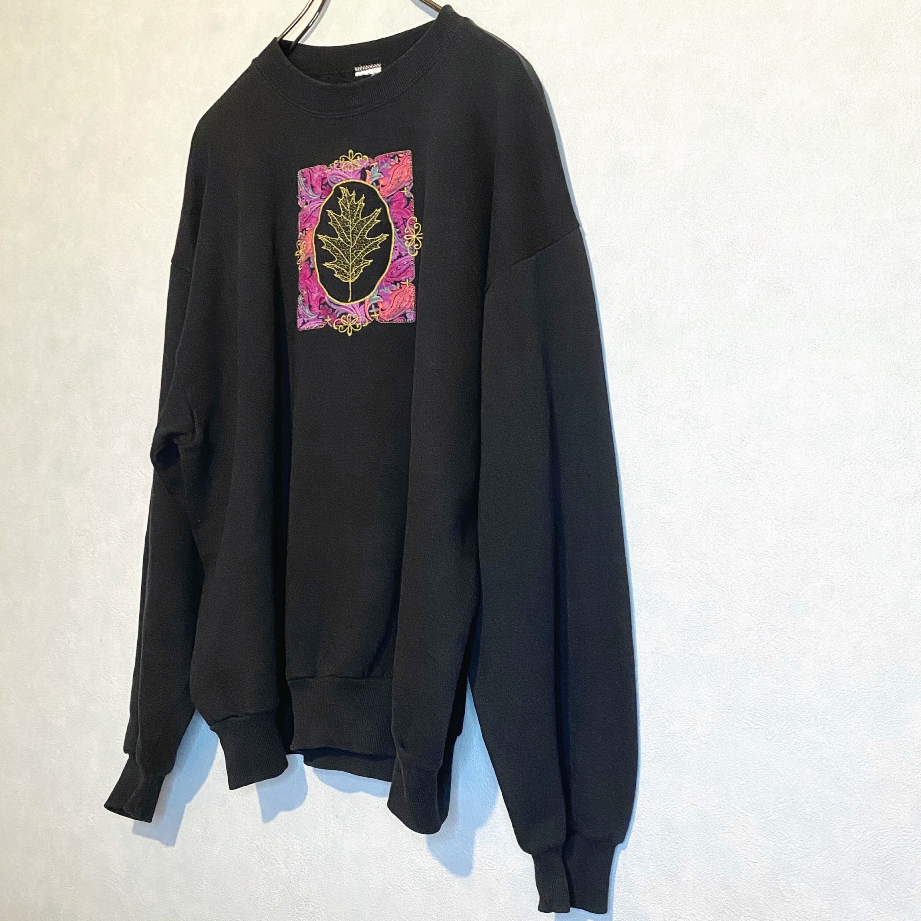 古着 ヴィンテージ レトロ 刺繍 スウェット 黒